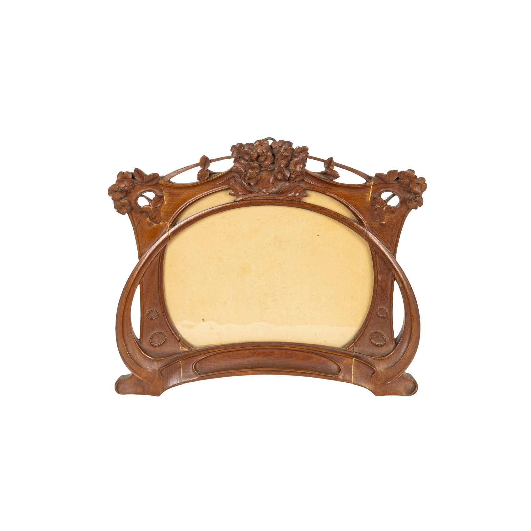 Marco modernista en madera de cerezo con decoraciones florales, c.1890-1900.