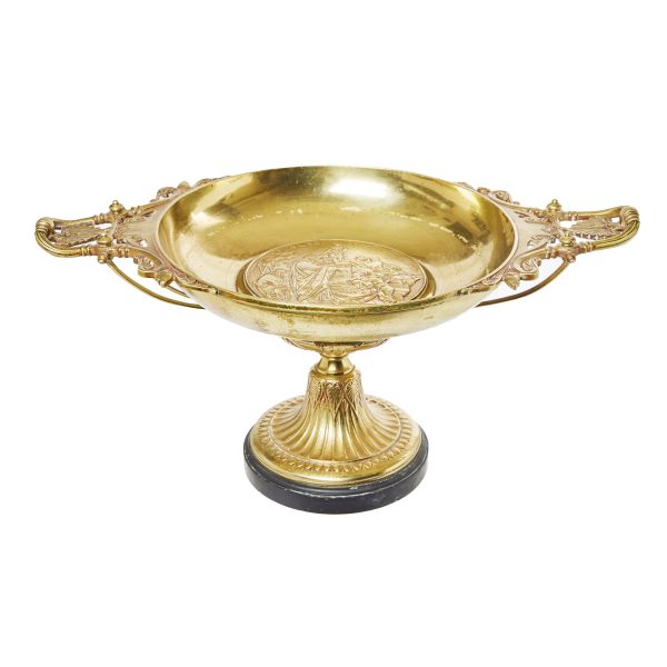 Centro francés con asas en bronce dorado con decoraciones fitomorfas en relieve y medallón central de estilo clásico, fles. del s.XIX.