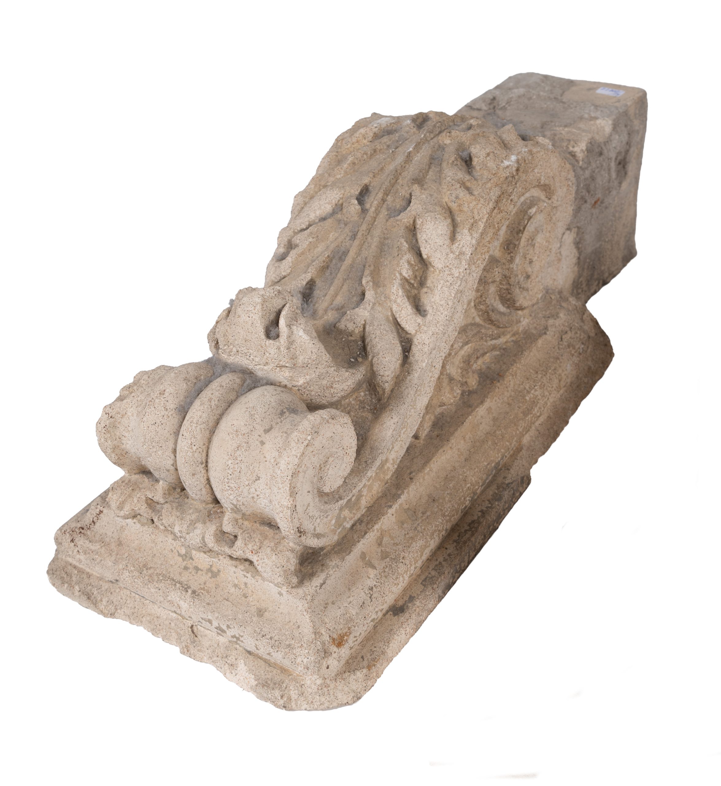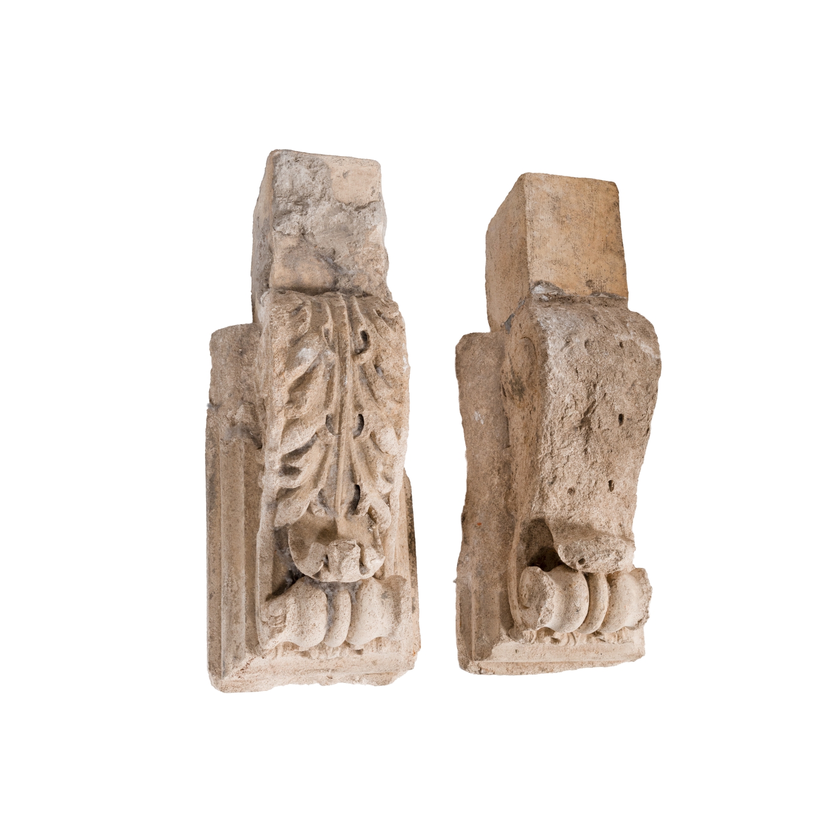 Pareja de ménsulas en piedra tallada con decoración de roleos y motivos vegetales, s.XIX.