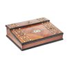 Escribanía de viaje francesa en madera de palo rosa con aplicaciones y bocallave en nácar, fles. del s.XIX. Adjunta dos tinteros, plumín y llave.