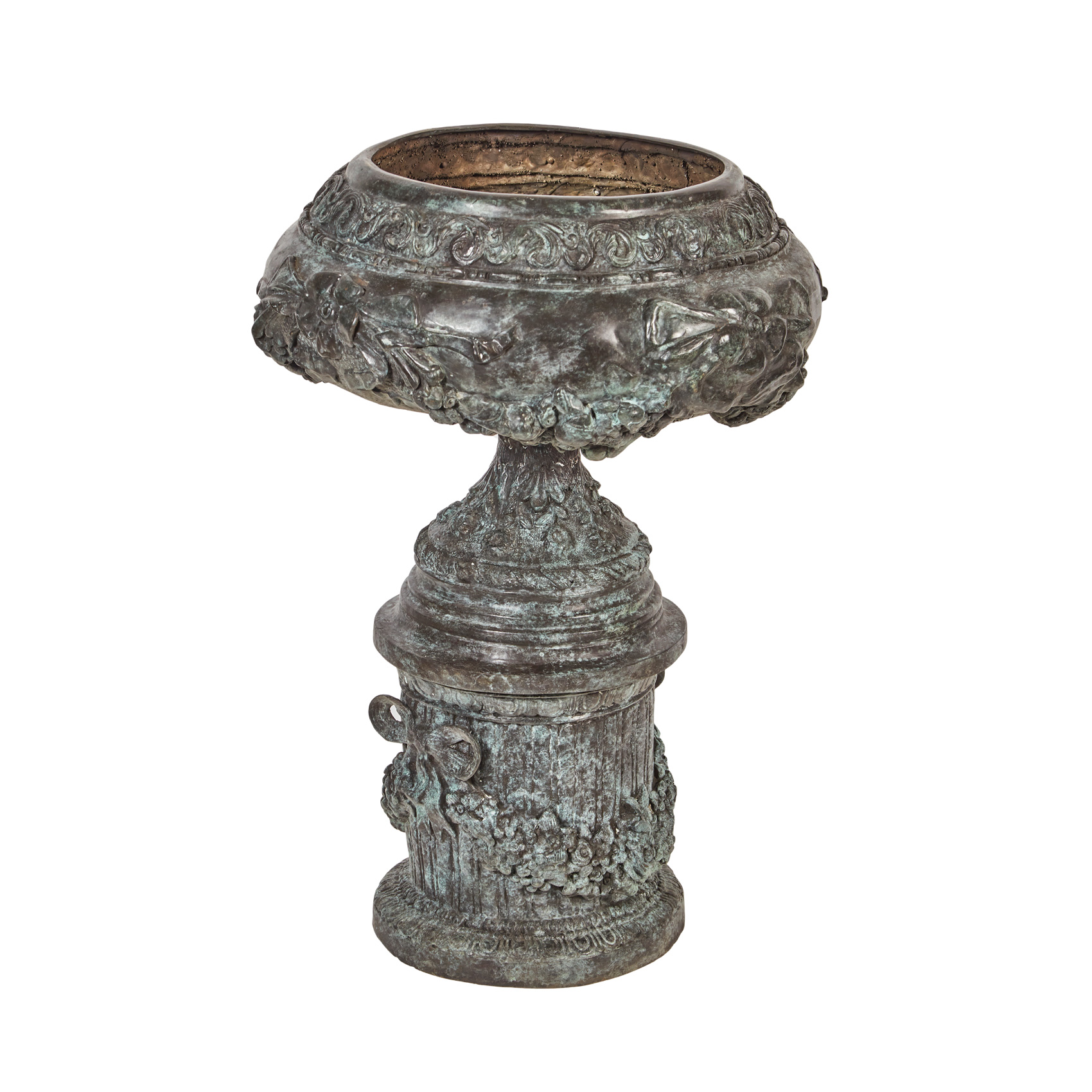 Jardinera de estilo francés en bronce con decoraciones florales y de lazos en relieve, mediados del s.XX.