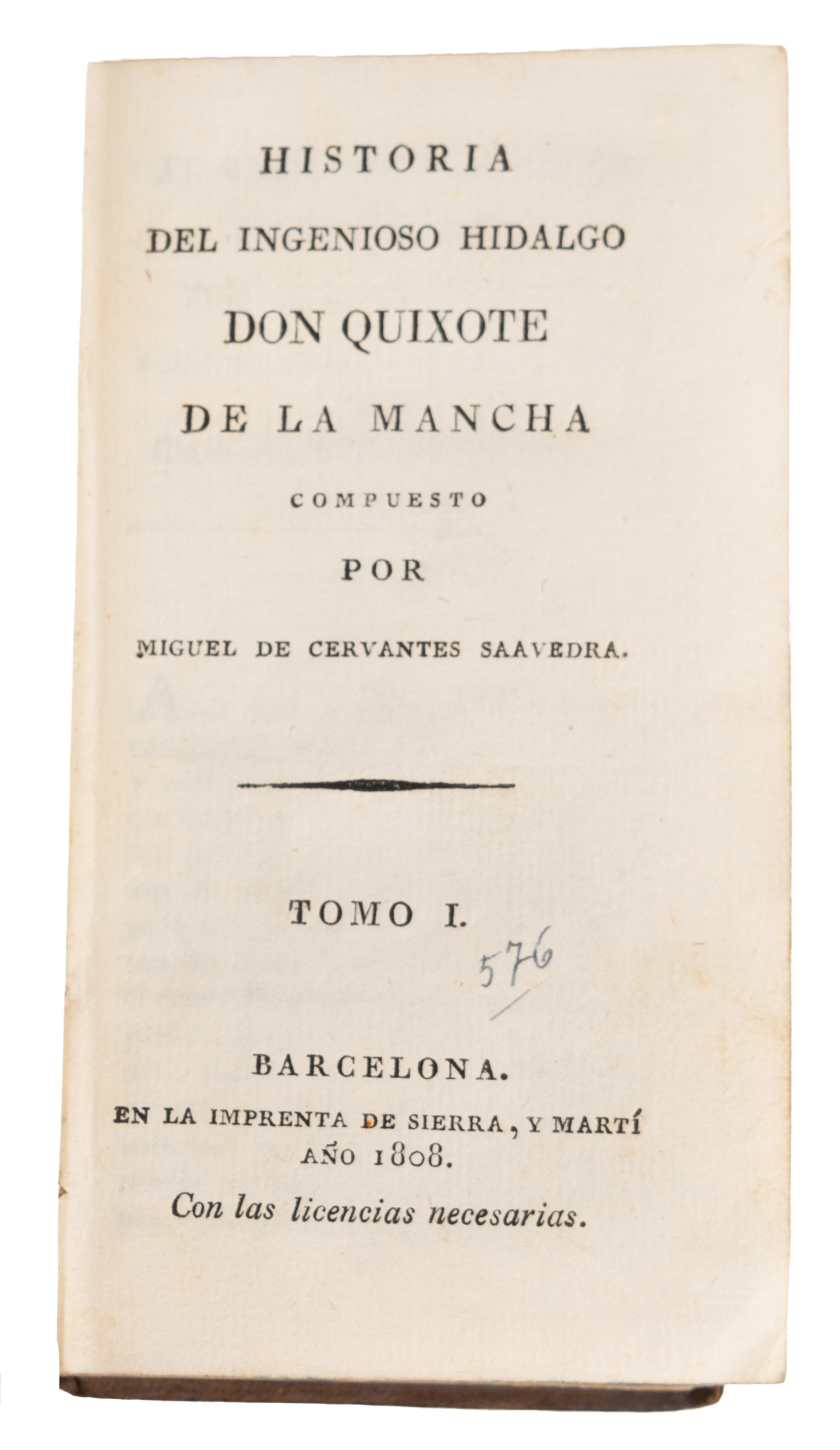 Historia del ingenioso hidalgo Don Quijote de la Mancha. Seis tomos de la obra de Miguel de Cervantes Saavedra (Alcalá de Henares,1547-Madrid, 1616). Edita Imprenta de Sierra y Martí, Barcelona, 1808-1814.