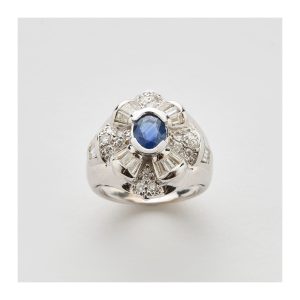 Sortija de la firma Nuovegioie en plata pulida y diamantada con decoración de roleos