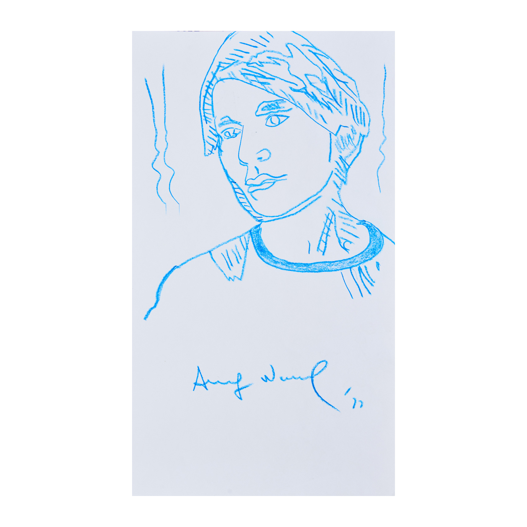 Dibujo a lápiz de color azul sobre cartulina. Firmado y fechado en 1977.