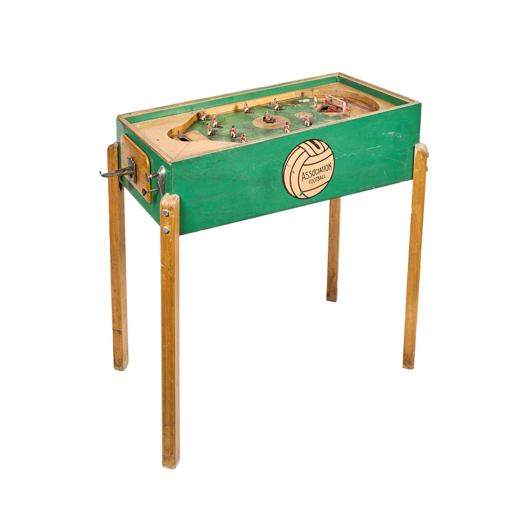 Juego de pinball mecánico de sobremesa con temática de futbol (soccer) de manufactura estadounidense, c.1933. Presenta número de patente.
