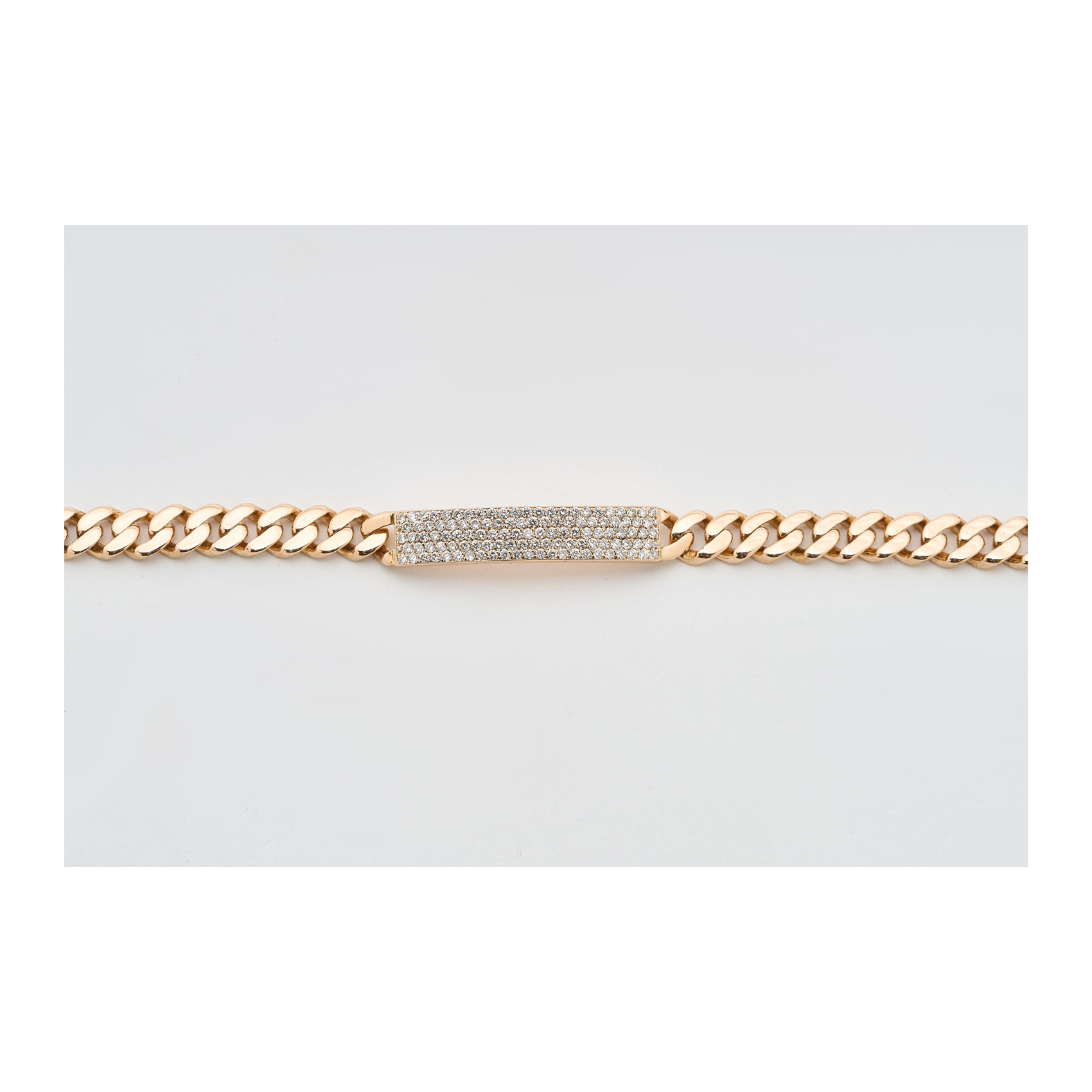 Pulsera nomeolvides en oro rosa con placa de diamantes talla brillante.