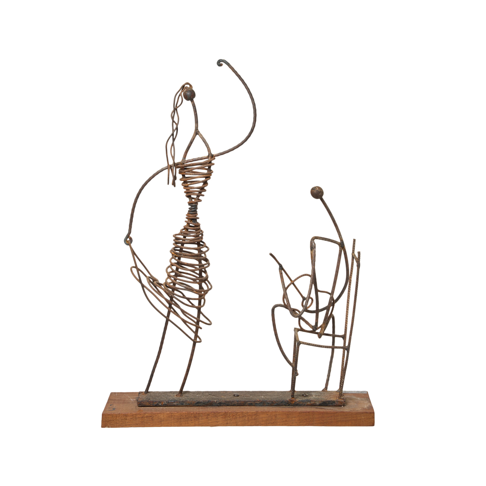 Escultura en hierro sobre peana en madera. Firmado con siglas.