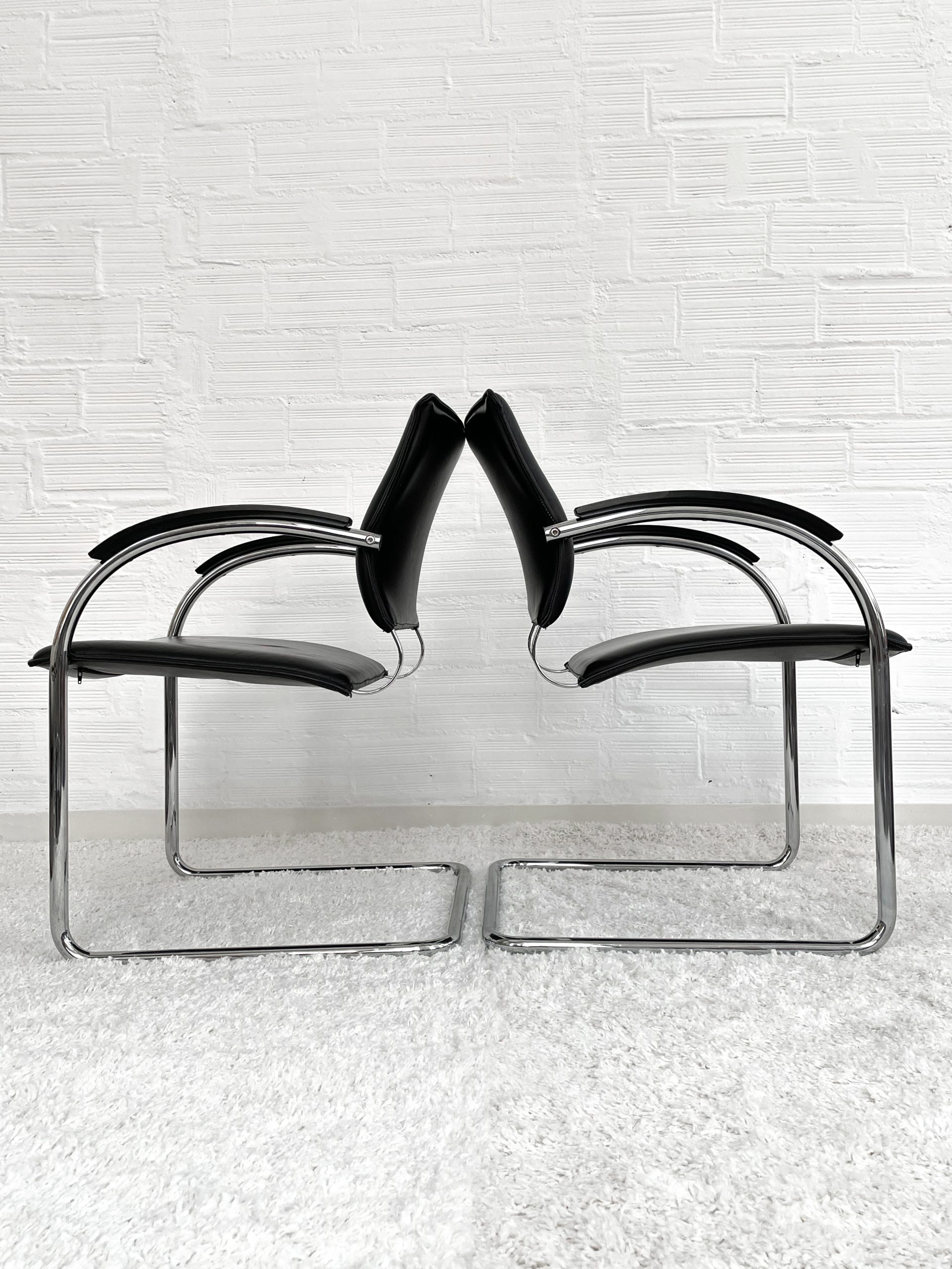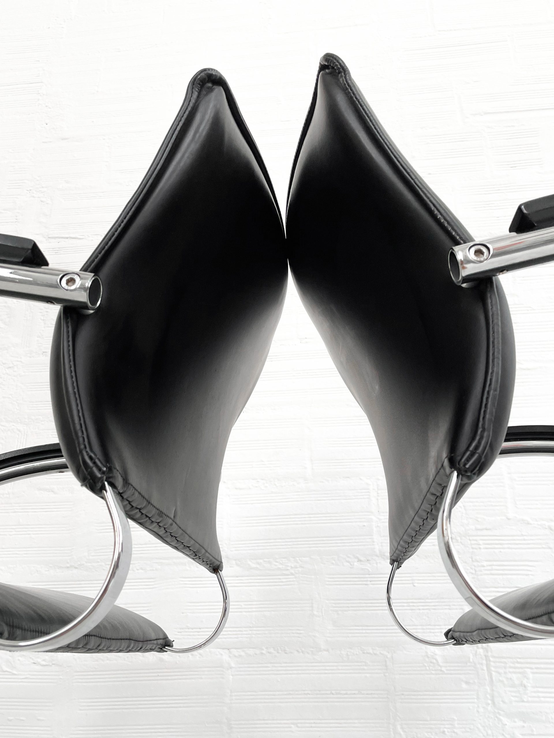 Pareja de sillas modelo S78 con estructura tubular en acero cromado y tapicería en cuero, c.1980. Marca de atribución.