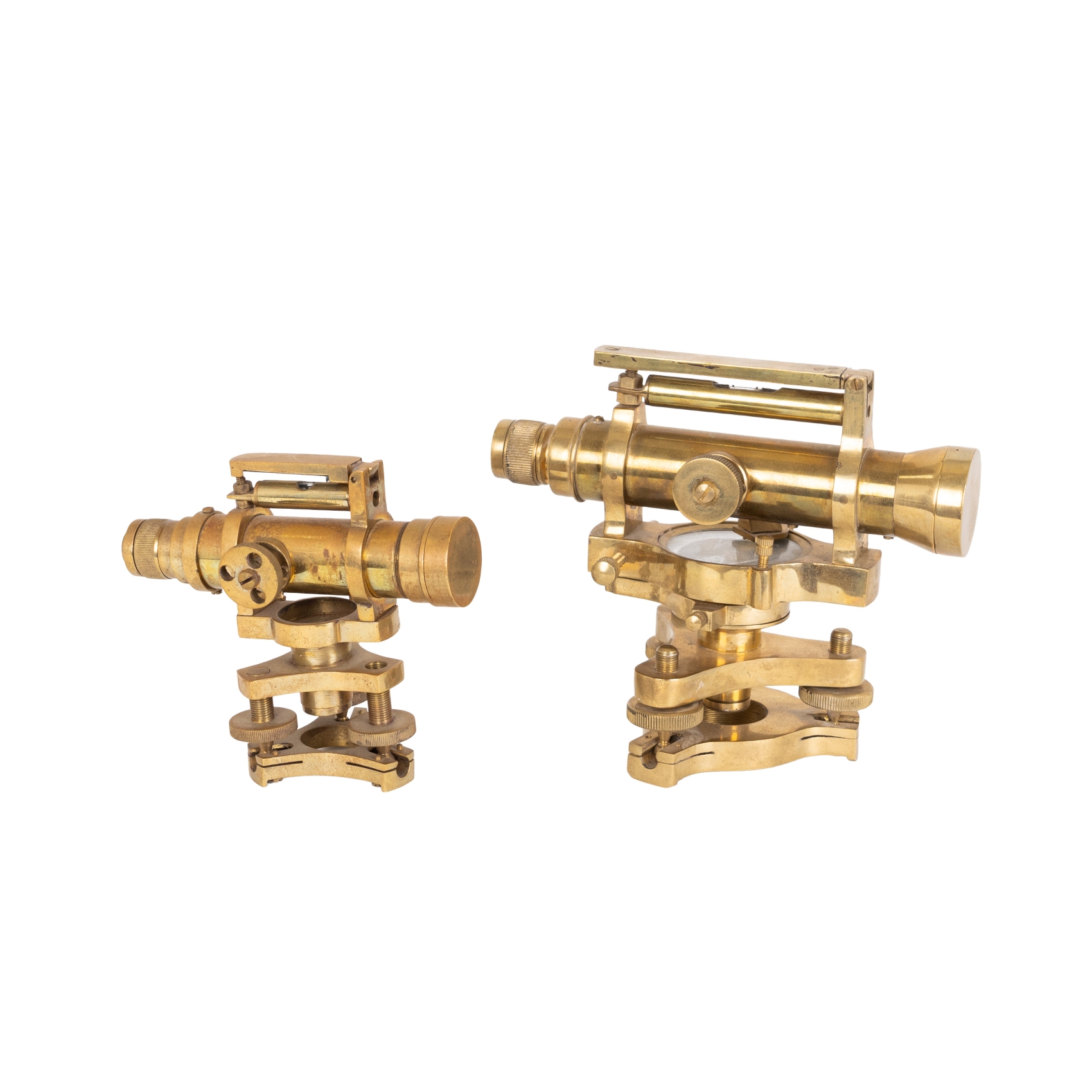 Pareja de teodolitos franceses en bronce dorado, fles. del s.XIX-ppios. del s.XX.