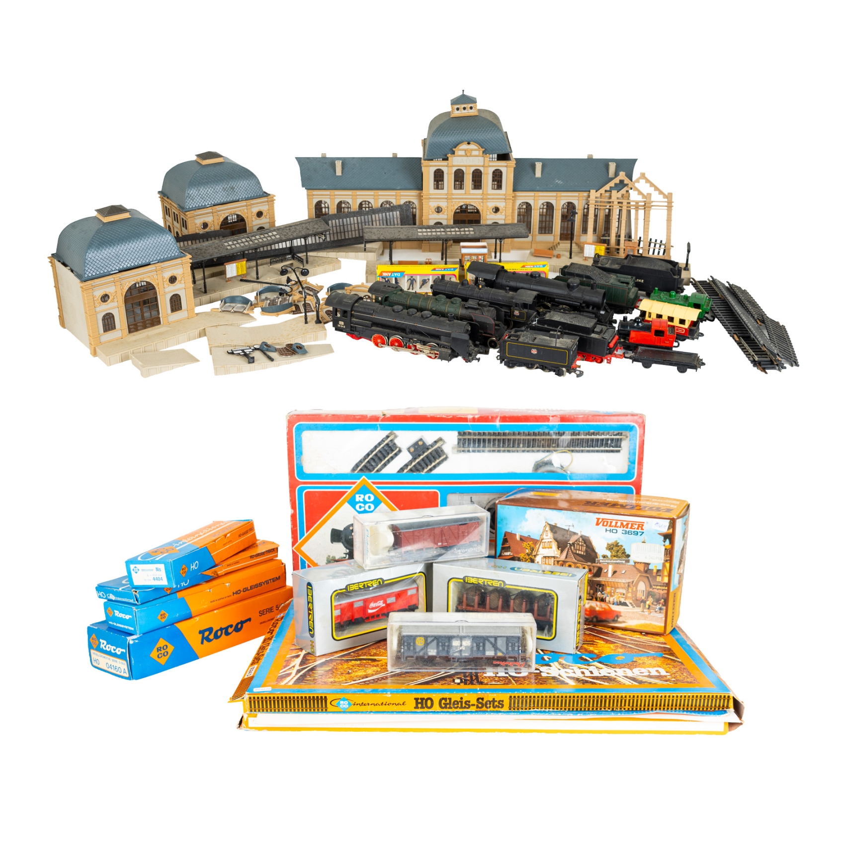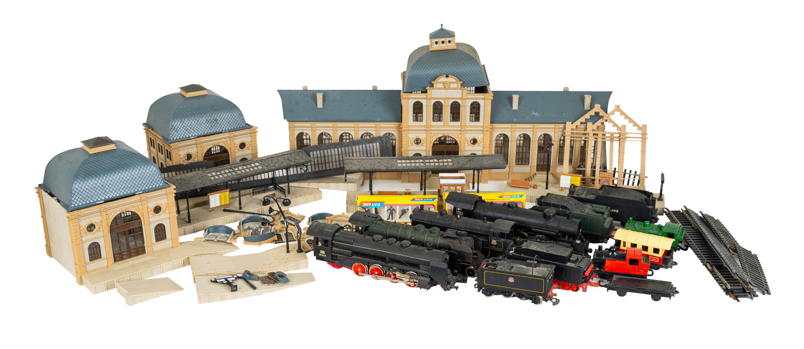 Lote de maquetas, locomotoras y vias de tren de diferentes modelos y manufacturas, segunda mitad s.XX.