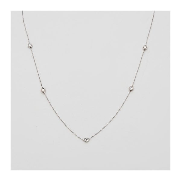 Gargantilla de cadena forjada en oro blanco con chatones de diamantes talla brillante alternados.