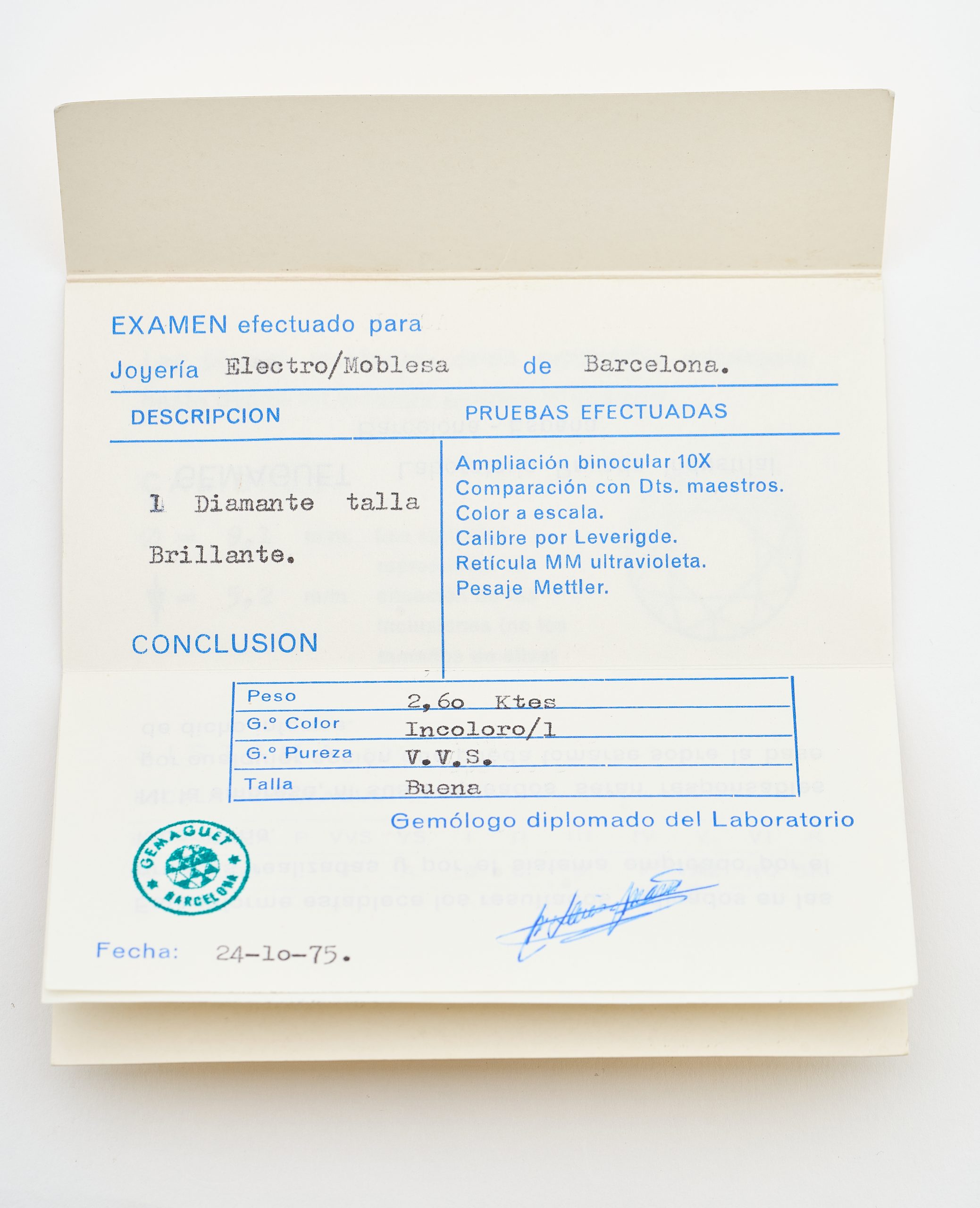 Adjunta certificado expedido por GEMAGUET. Estimación:28000 – 32000€