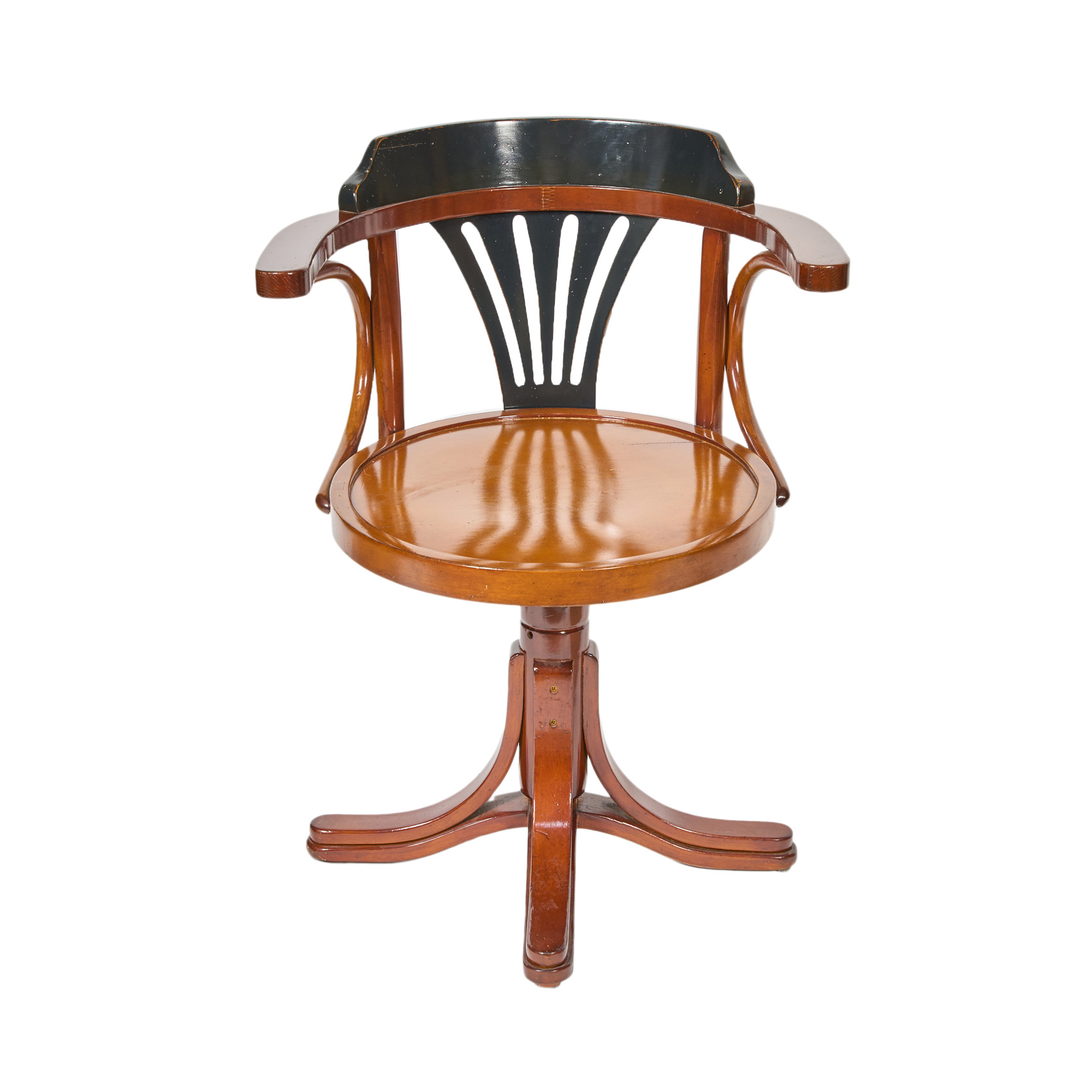 Silla giratoria de la manufactura Authentic Models modelo «Purser’s Chairs» en madera de caoba, s.XX. Presenta placa de origen.