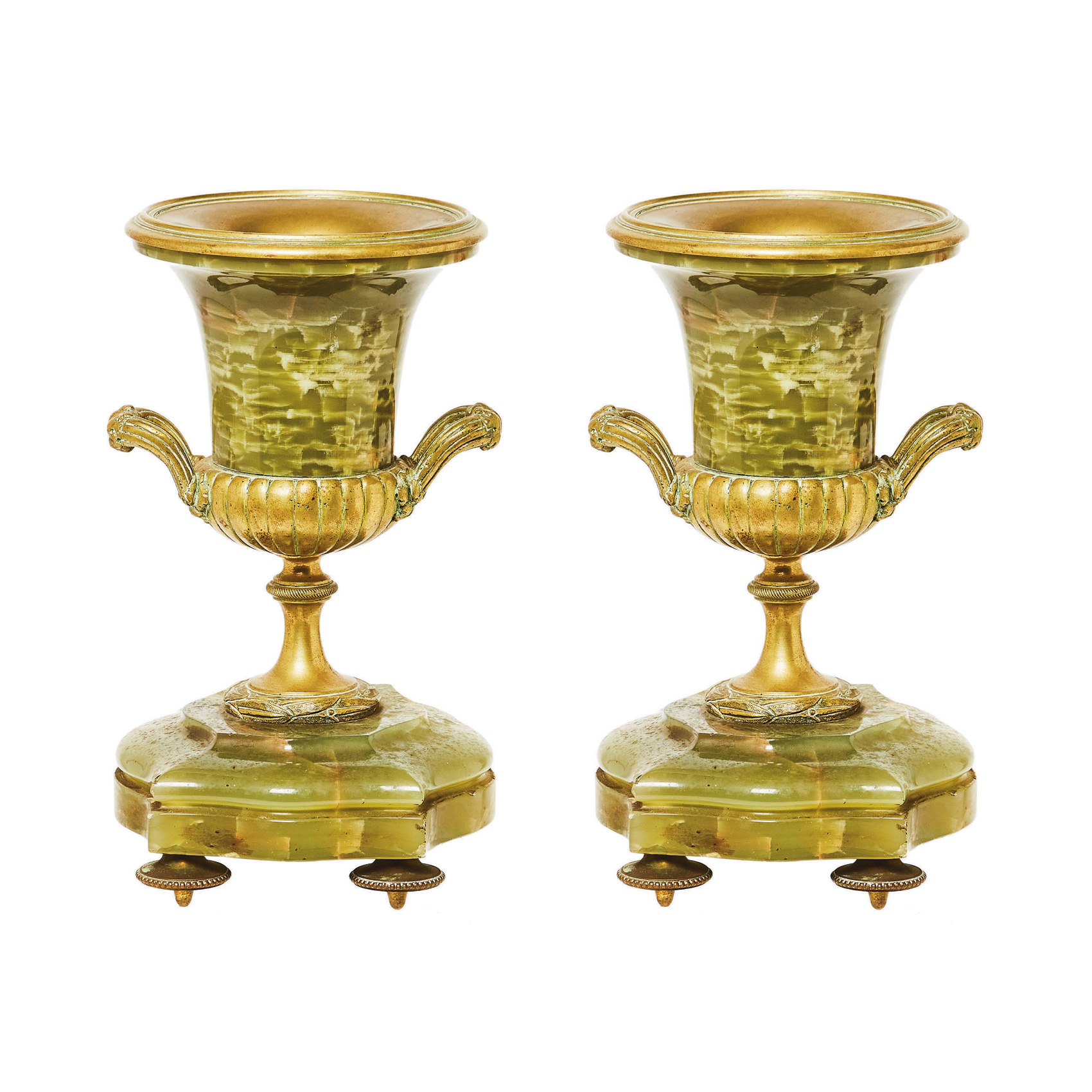 Pareja de copas francesas en ónix y bronce dorado, fles. del s.XIX.
