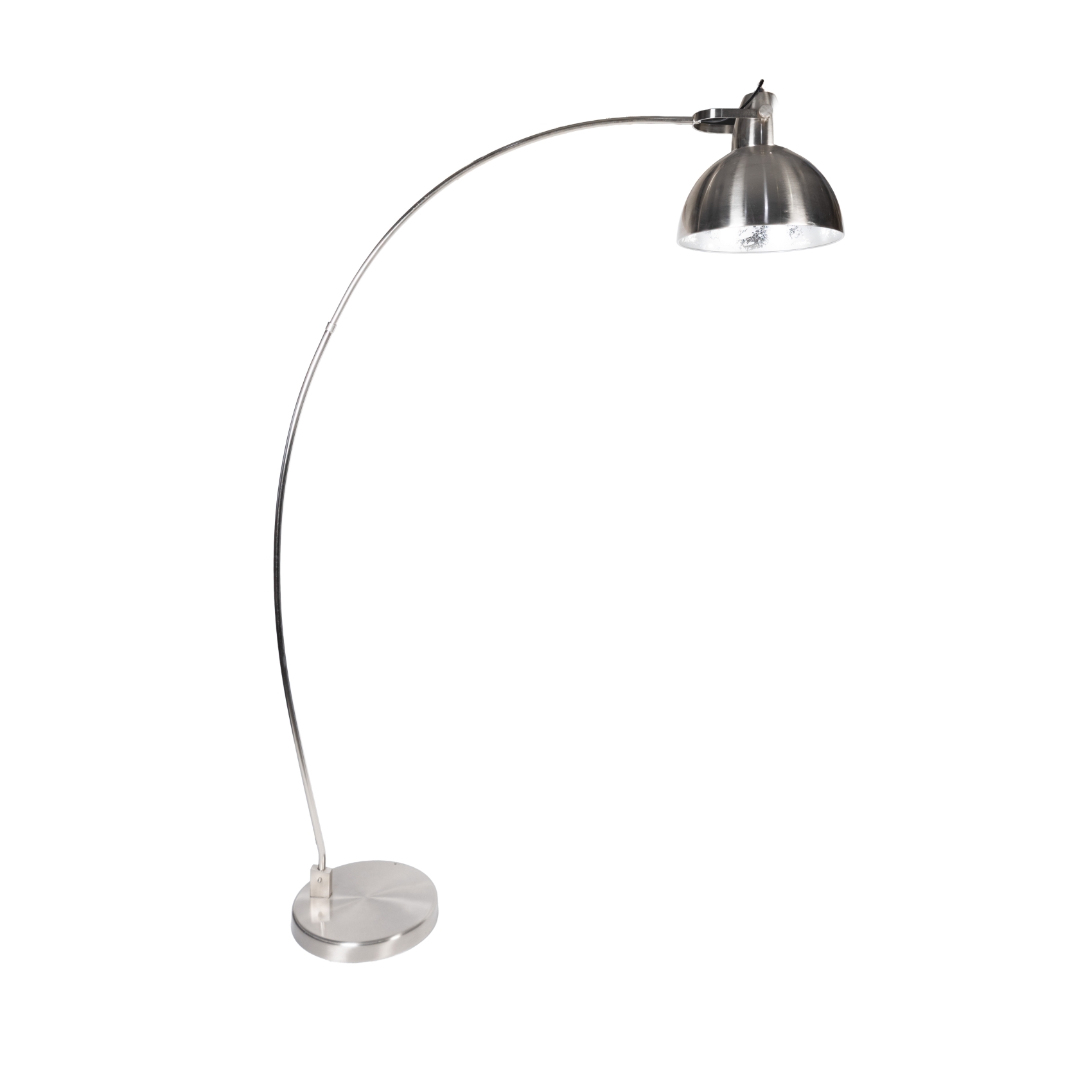Lámpara de arco modelo «Chicago» en acero galvanizado con interior de pantalla parcialmente plateado. Base con peso en mármol.