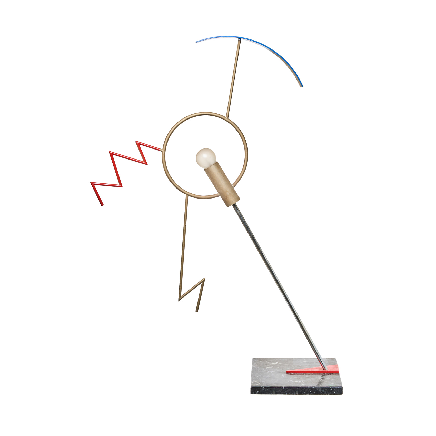 Lámpara de sobremesa modelo «Valencia» en chapa esmaltada en rojo y azul, acero tubular niquelado y base en mármol negro, c.1988.