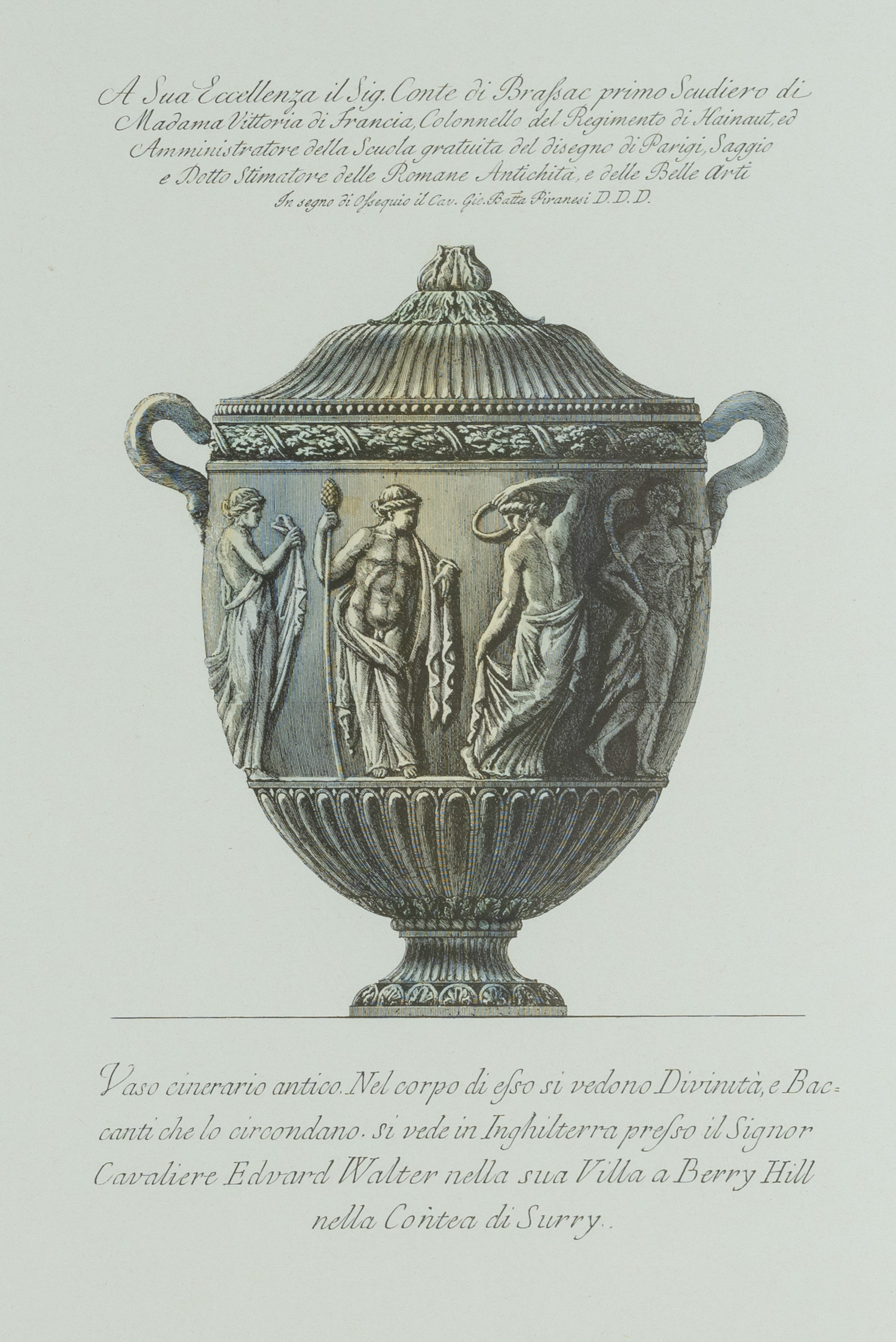 Pareja de grabados al aguafuerte sobre papel. Publicados originalmente en el libro «Vasi, candelabri, cippi, sarcofagi, tripodi, lucerne et ornamenti antichi» publicado en 1778.