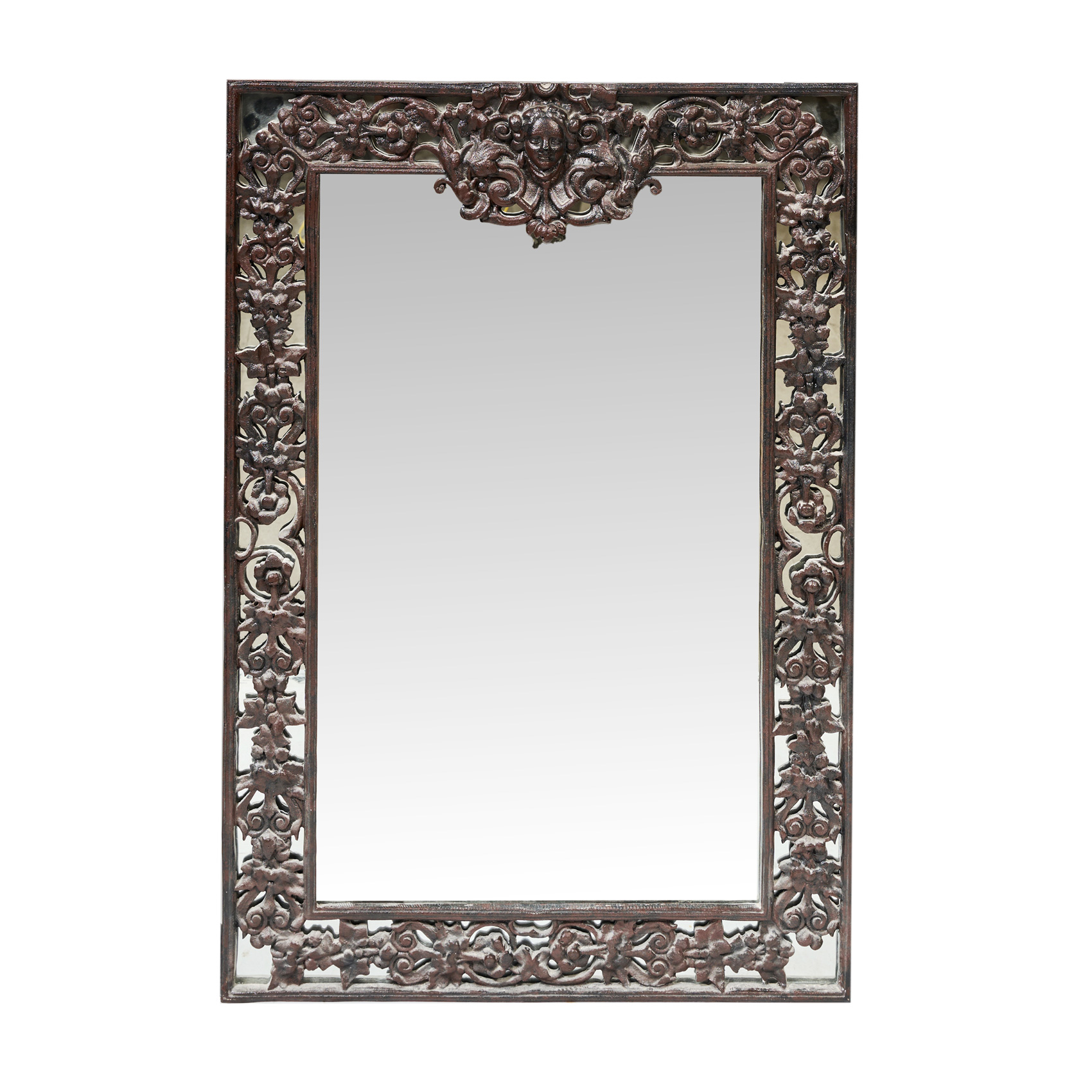Espejo en hierro fundido policromado con decoraciones de motivos vegetales con mascarón en la parte superior, ppios. del s.XX.