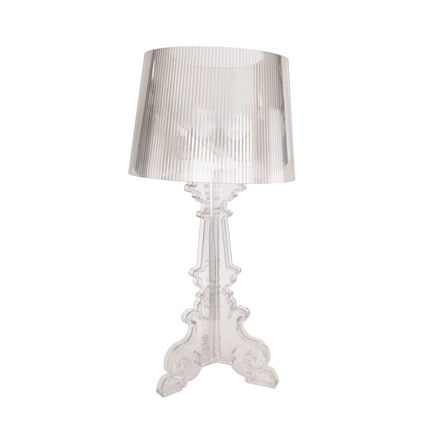 Lámpara de sobremesa modeolo «Bourgie Transparent» en policarbonato translúcido de estilo barroco regulable a tres alturas.