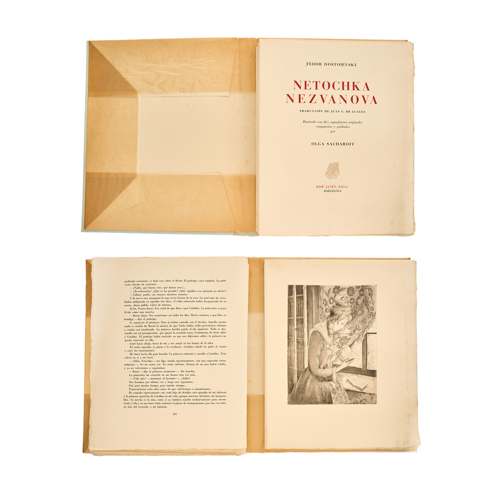 Libro con funda ilustrado con un total de diez grabados al aguafuerte sobre papel. Firmados en plancha. Editados por José Janés, Barcelona.