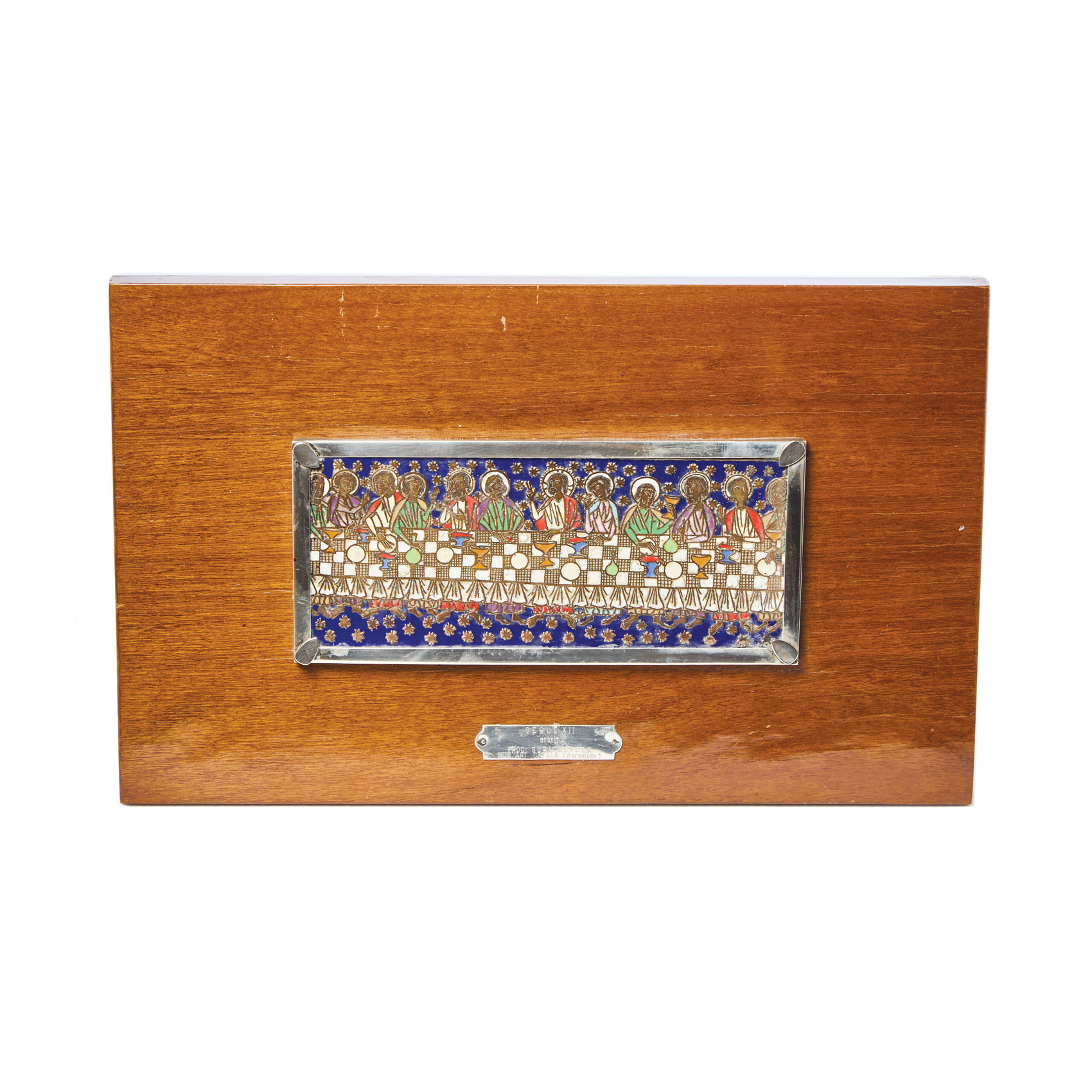 Santa Cena. Plafón en cobre esmaltado rematado por marco en plata punzonada sobre plafón en madera.