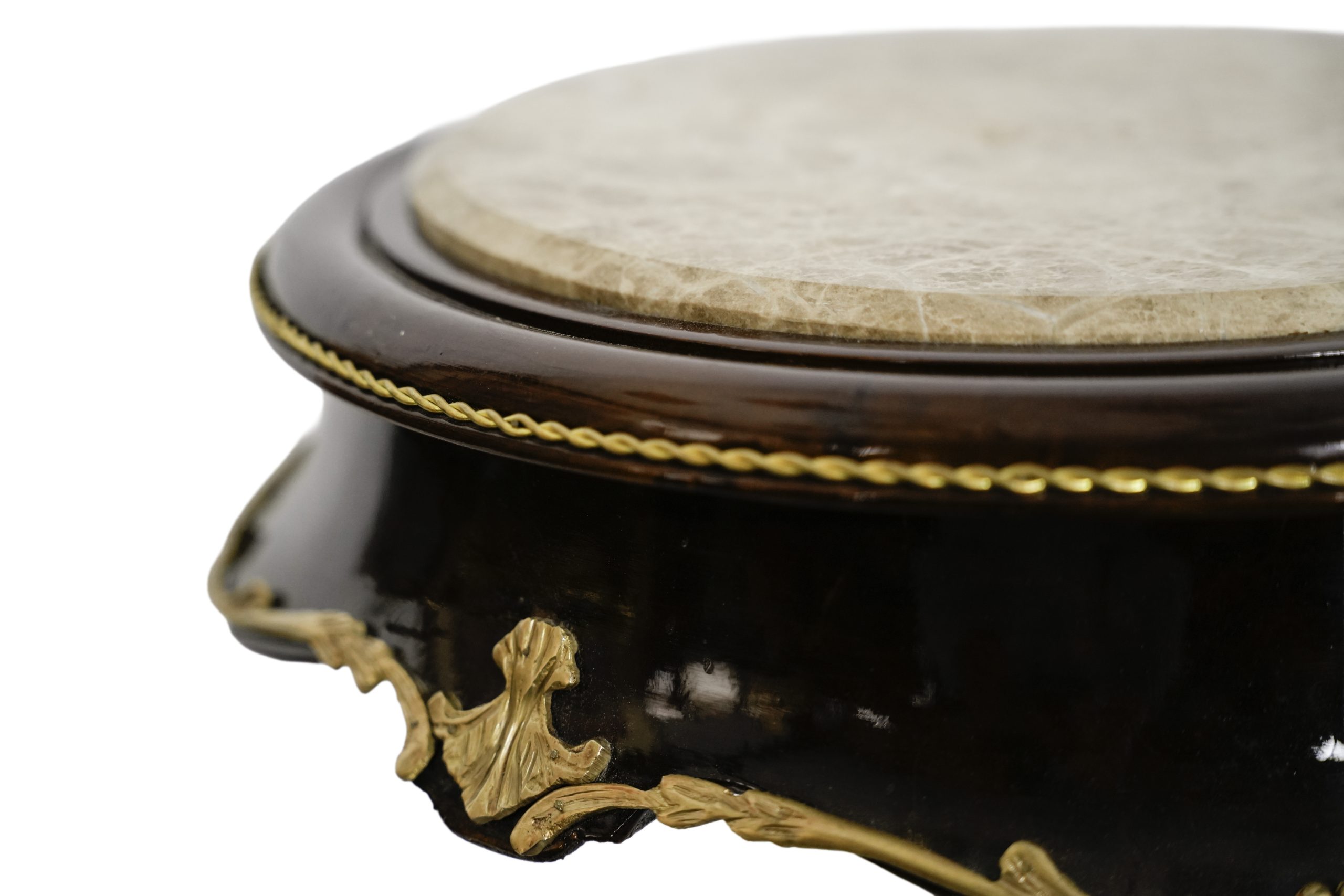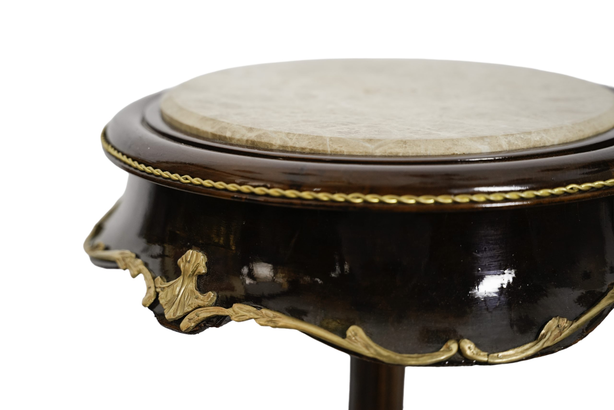 Pareja de veladores en madera con aplicaciones en bronce, s.XX.