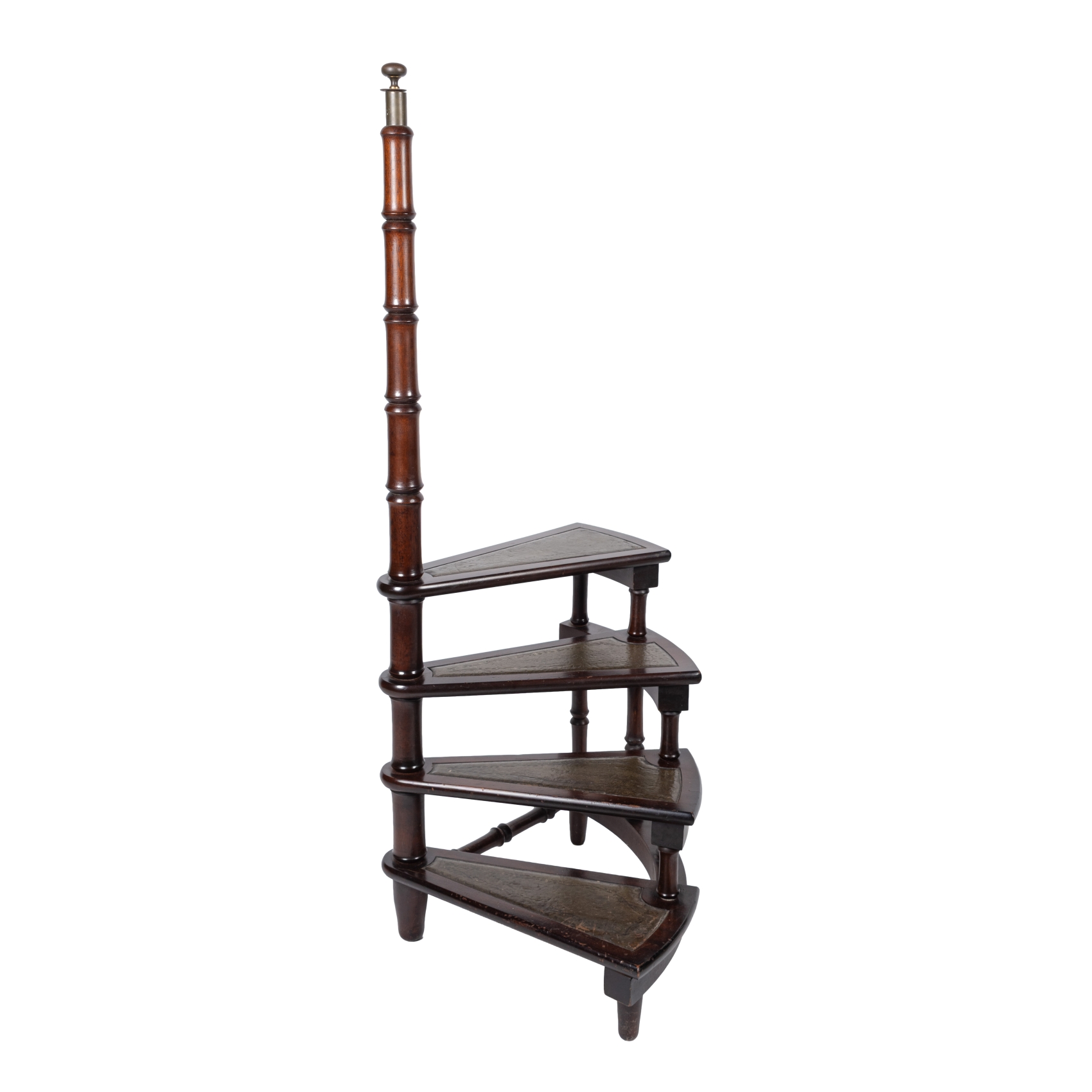Escalera de biblioteca de cuatro peldaños en madera tallada, s.XX.
