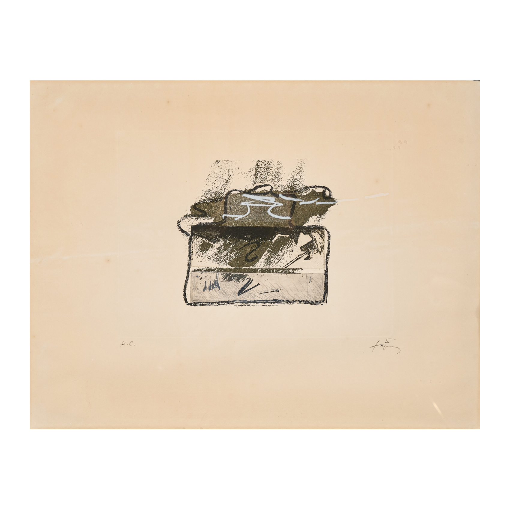 Grabado al aguafuerte sobre papel Auvergne-Richard. Firmado, justificado P.A. y numerado 15/15 a lápiz. Bibliografía: Reproducido en el libro «Tàpies. Obra Gràfica 1979-1986» por Mariuccia Galfetti. Pág. 181, Nº948. Editorial Gustavo Gili. Barcelona.