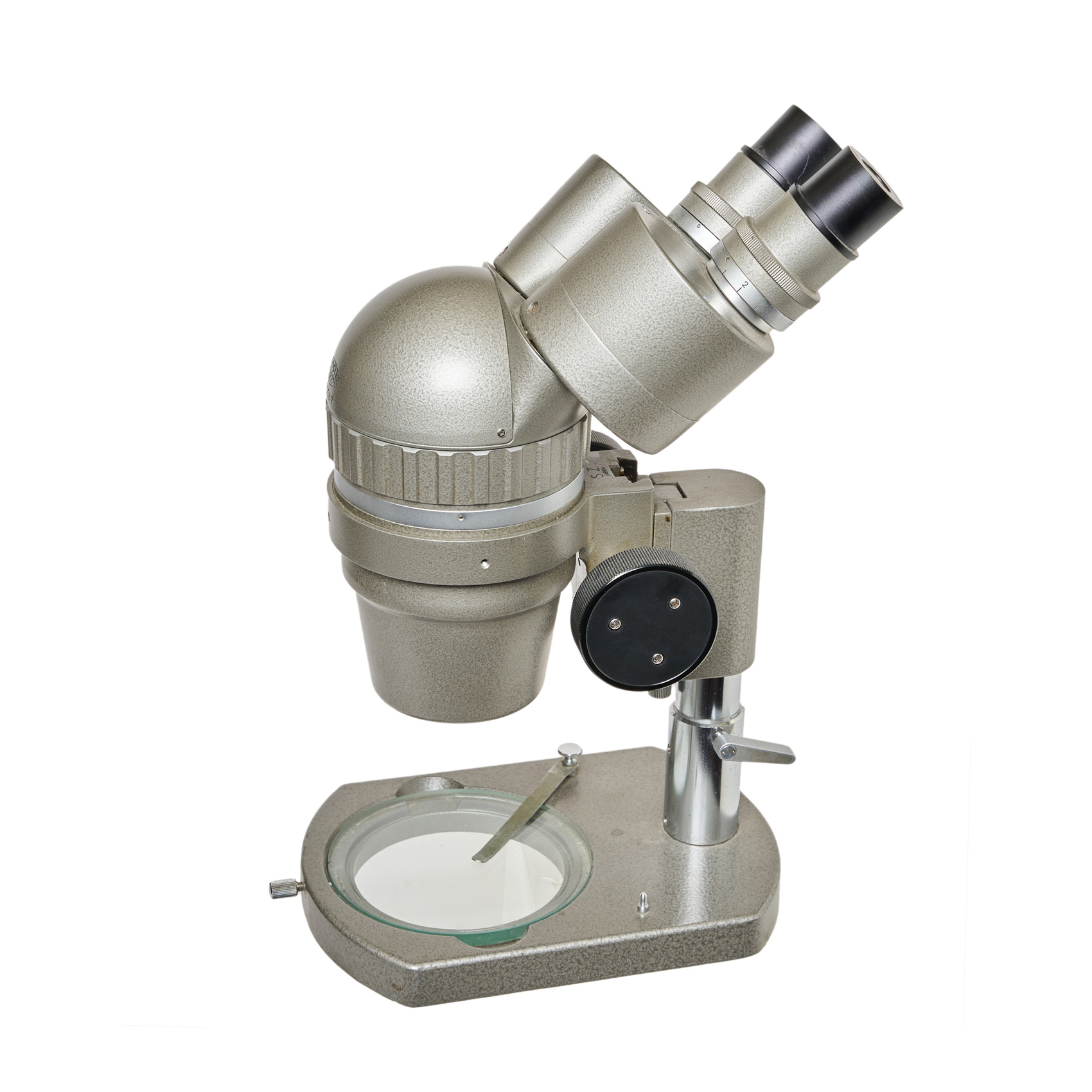 Microscopio japonés de la manufactura Olympus, Tokio, modelo G10X en metal lacado en gris. Numerado 285569.