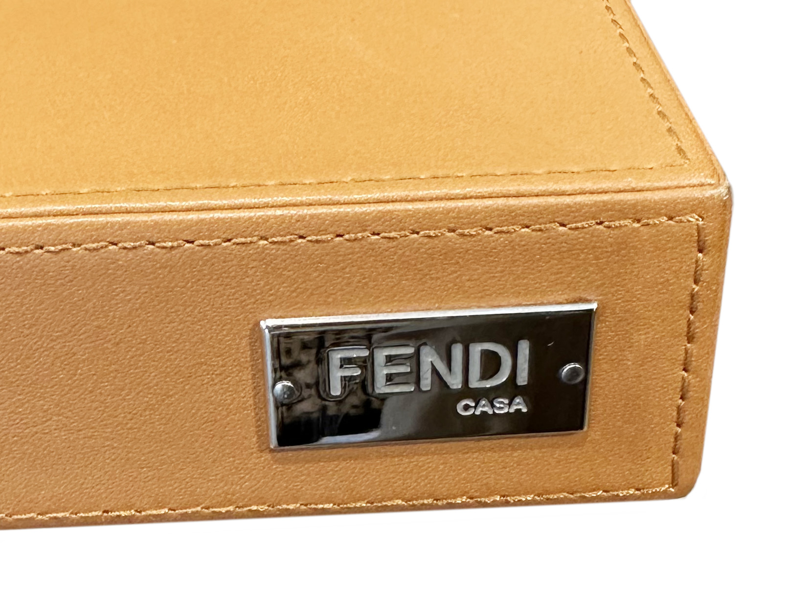 FENDI. Mesa de comedor modelo «Bernini» con sobre y pies en piel tonalidad Hermès. Presenta placa orginal de la marca.