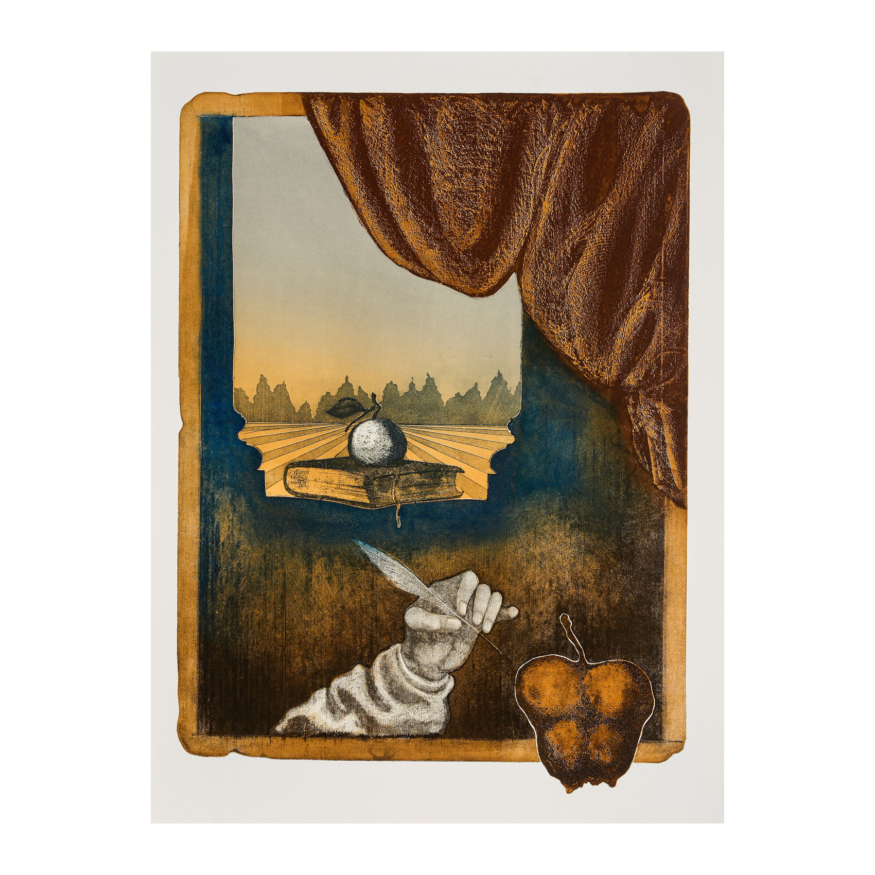 Composición con mano y pluma.