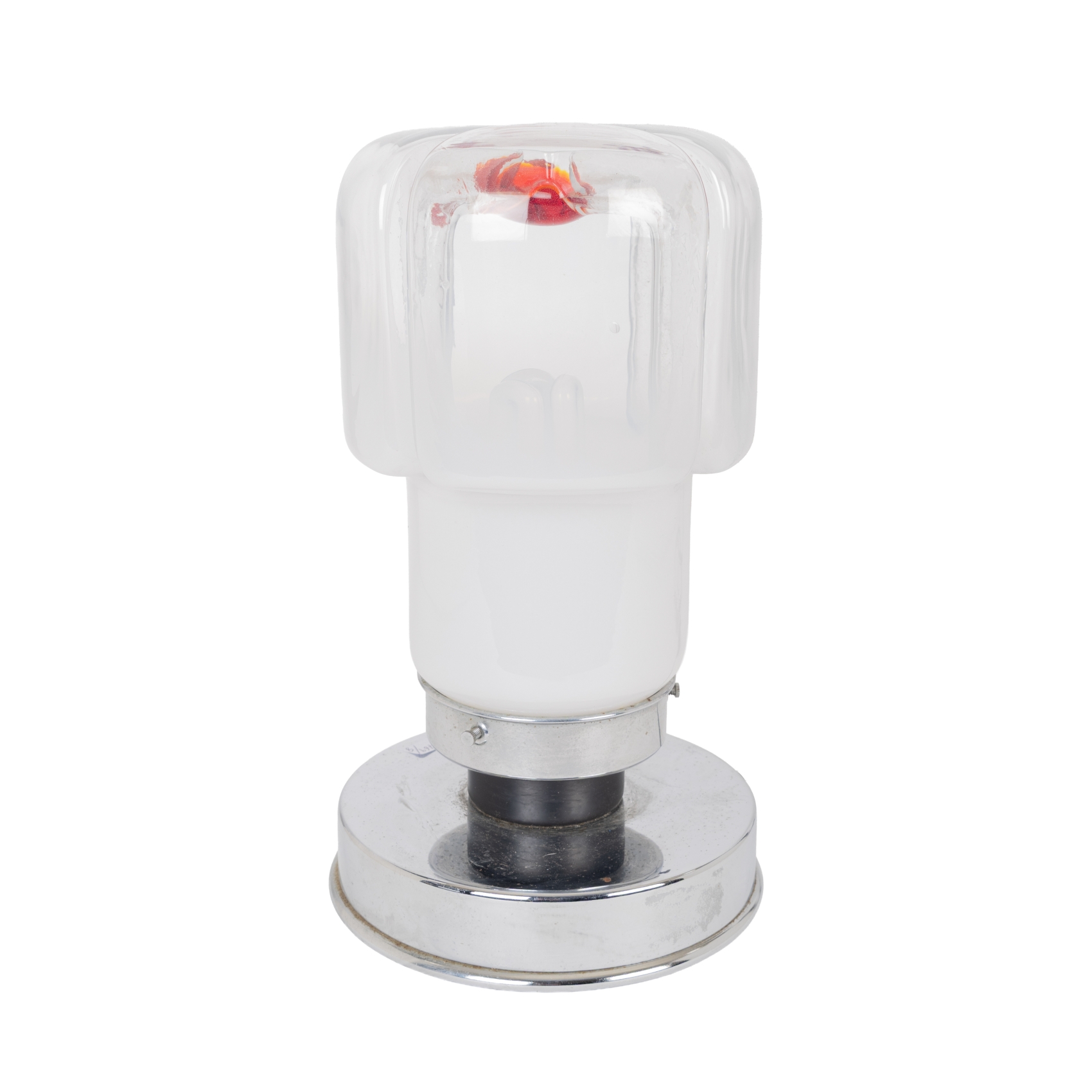 Lámpara de sobremesa de la serie «Membrana» en cristal de tonalidad blanca, translúcida y roja, c.1960. Base en acero pulido.