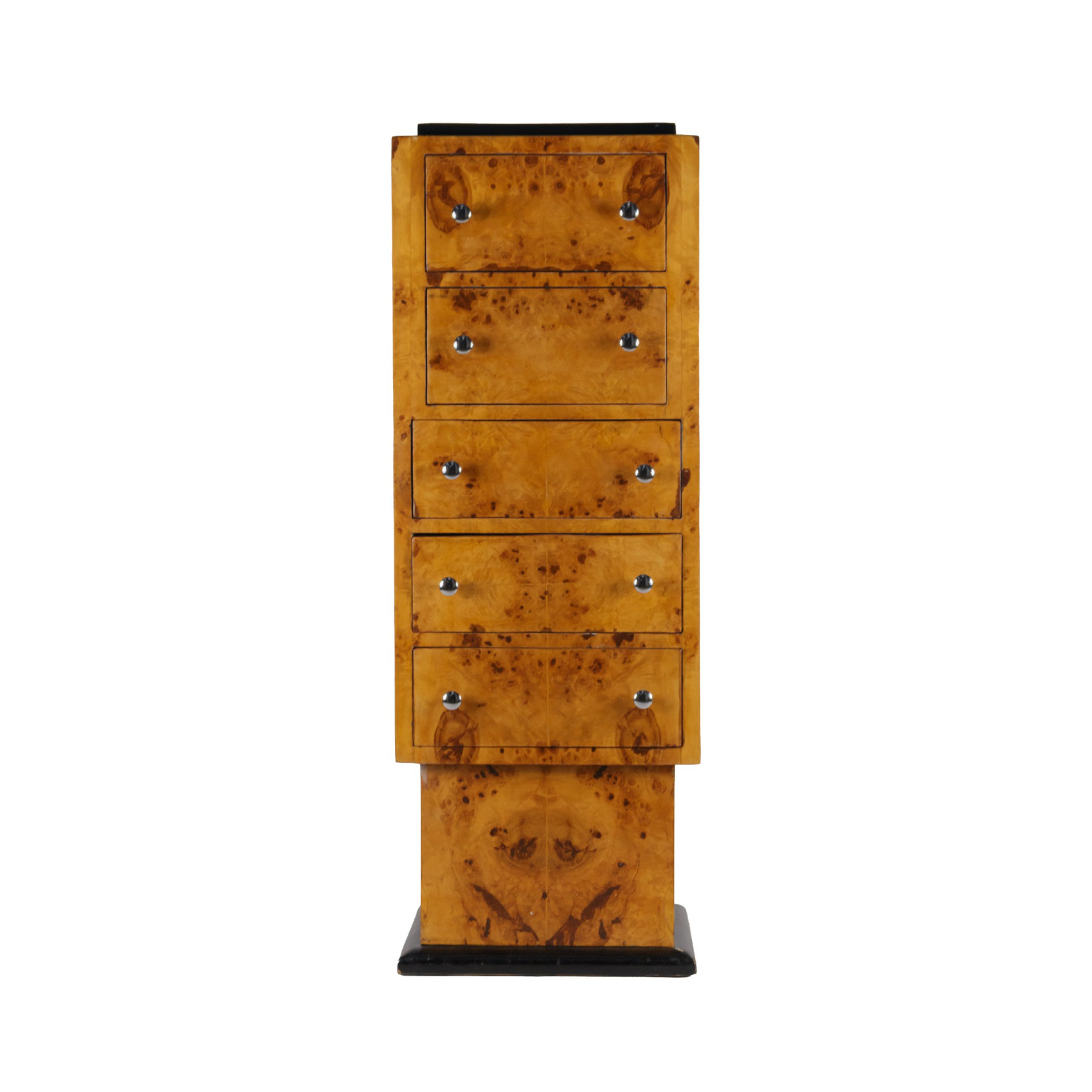 Sinfonier estilo Art Deco en madera de olmo con detalles ebonizados, s.XX. Presenta cinco registros de cajones al frente.