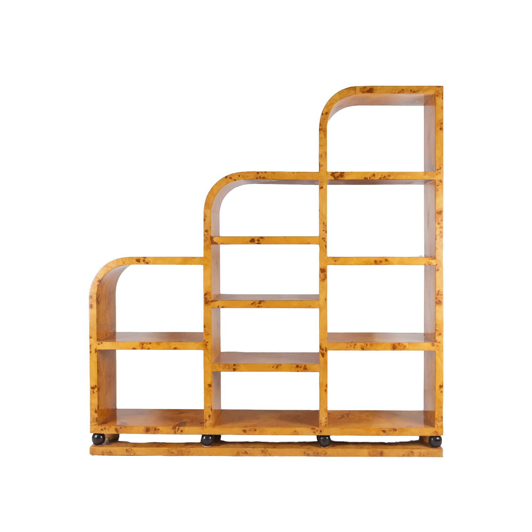 Estantería estilo Art Deco en madera con acabado en olmo y detalles ebonizados, s.XX.