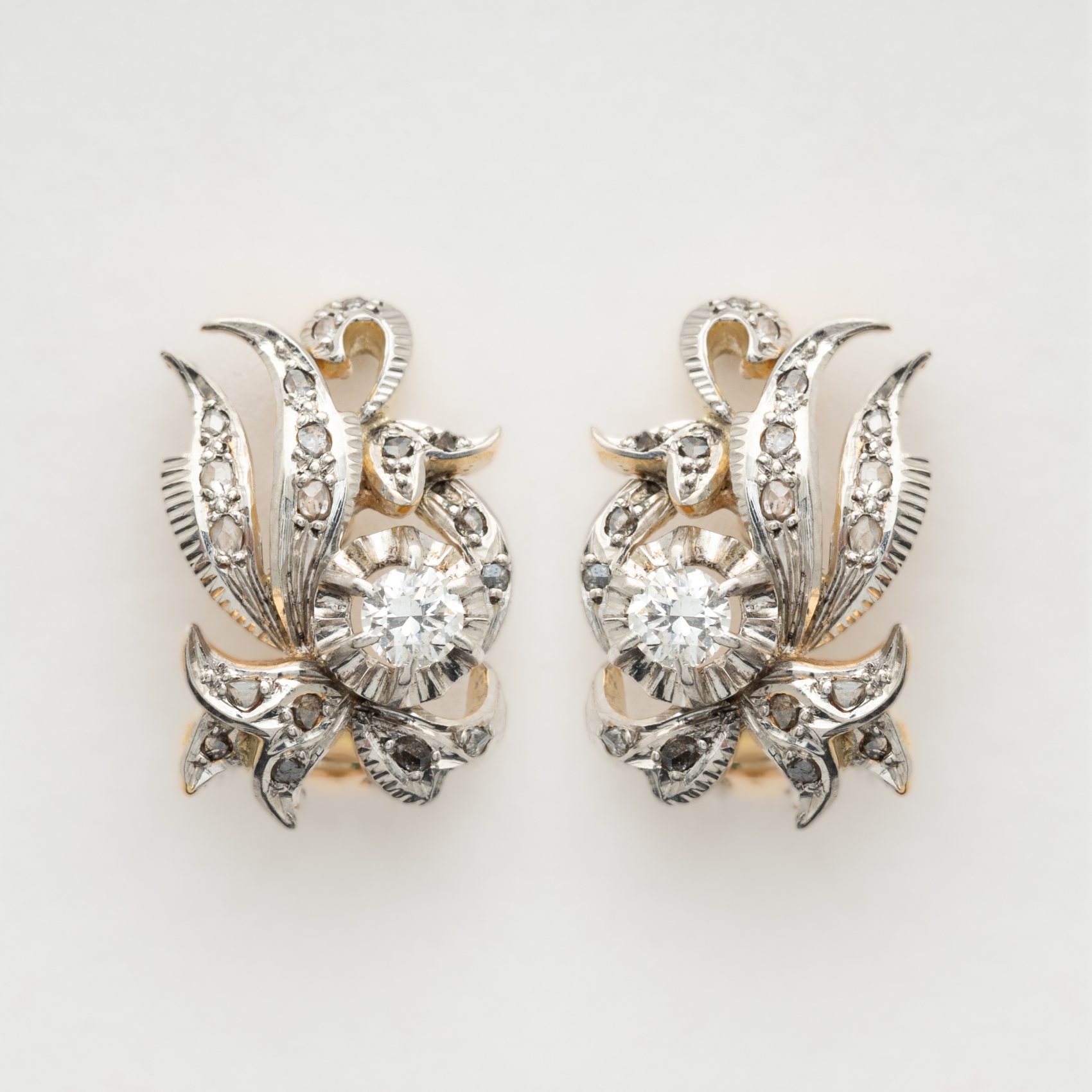 Pendientes en oro y vistas en platino con diamantes tallas brillante antigua y rosa 3/3, c.1940.