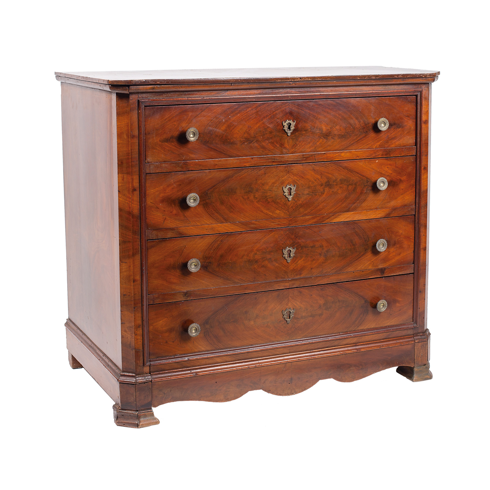 Cómoda inglesa en madera de caoba con cuatro cajones, fles. del s.XIX.