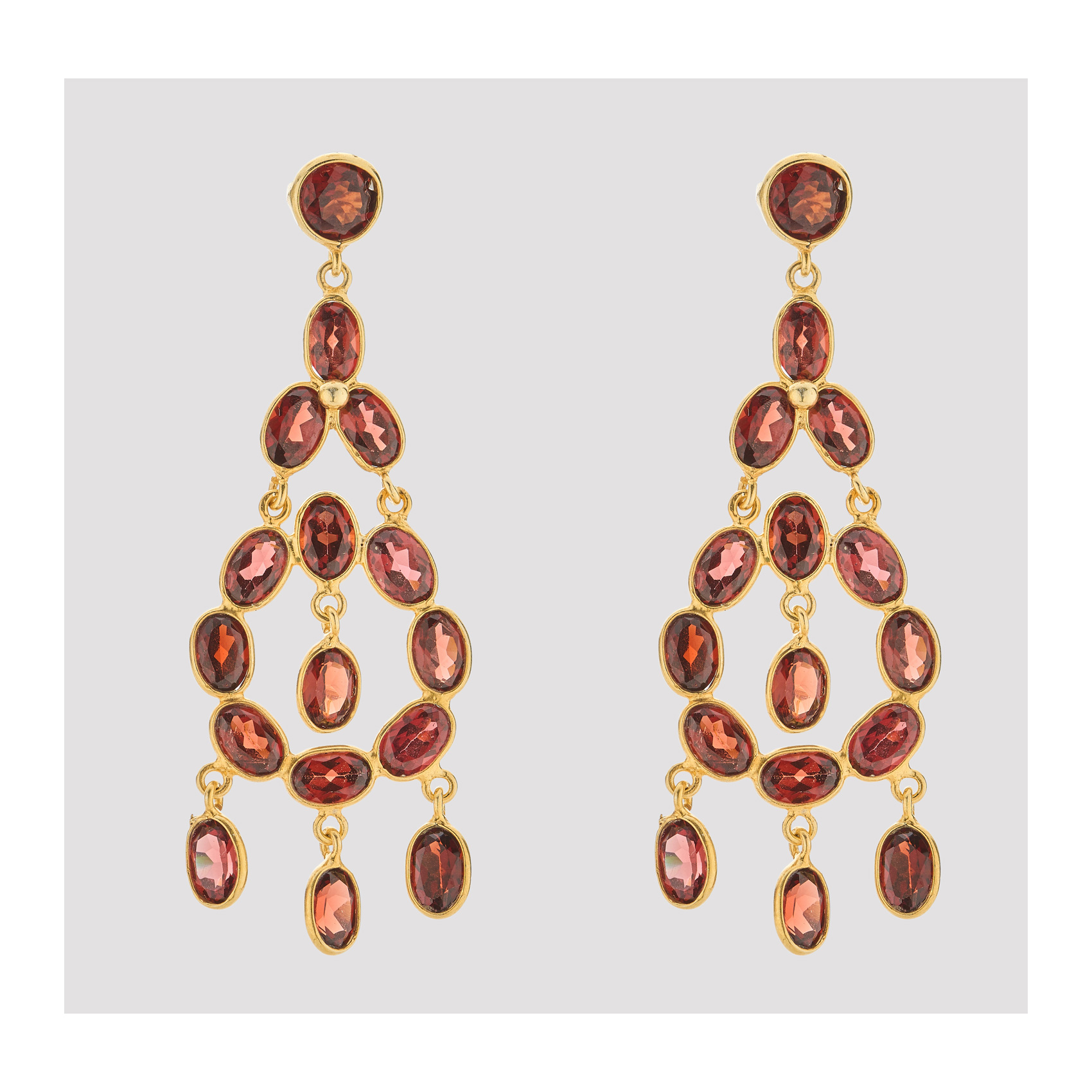 Pendientes largos en plata vermeill con granates talla oval engastado en chatón.