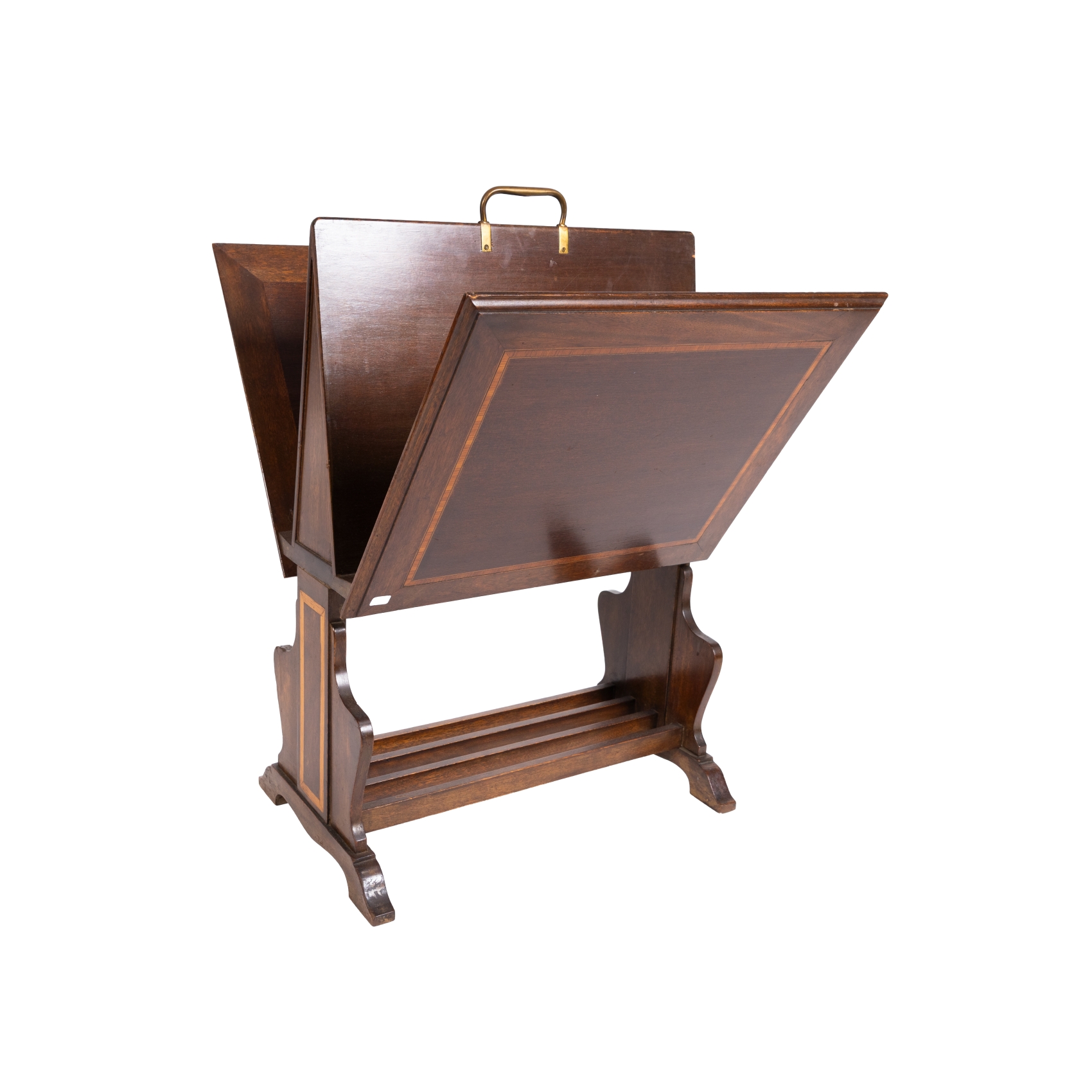 Revistero inglés en madera de cedro, haya y palo rosa con dos compartimentos de apertura lateral, segunda mitad del s.XX.