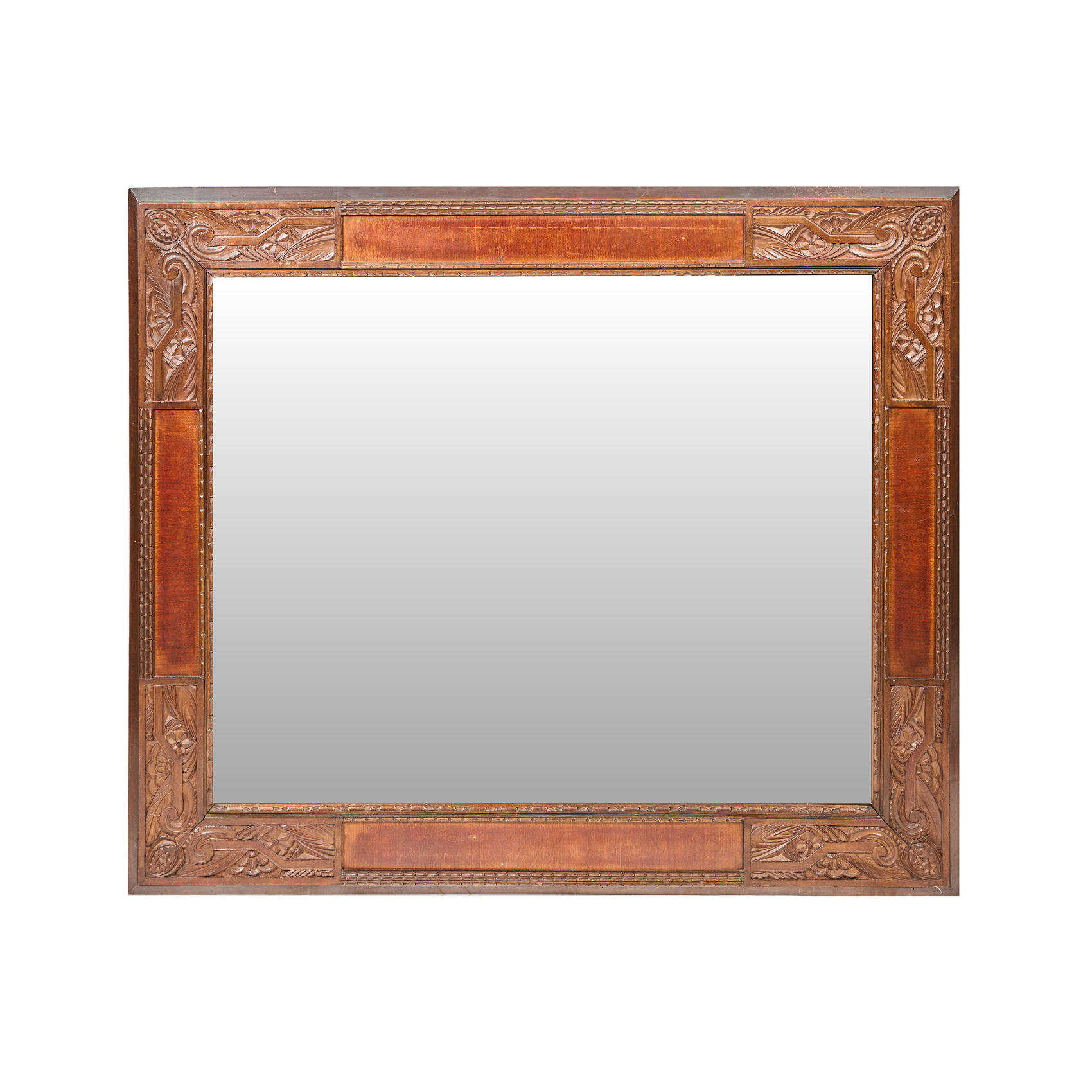 Espejo rectangular con moldura en madera tallada con motivos geométricos y vegetales en ángulos, s.XX.