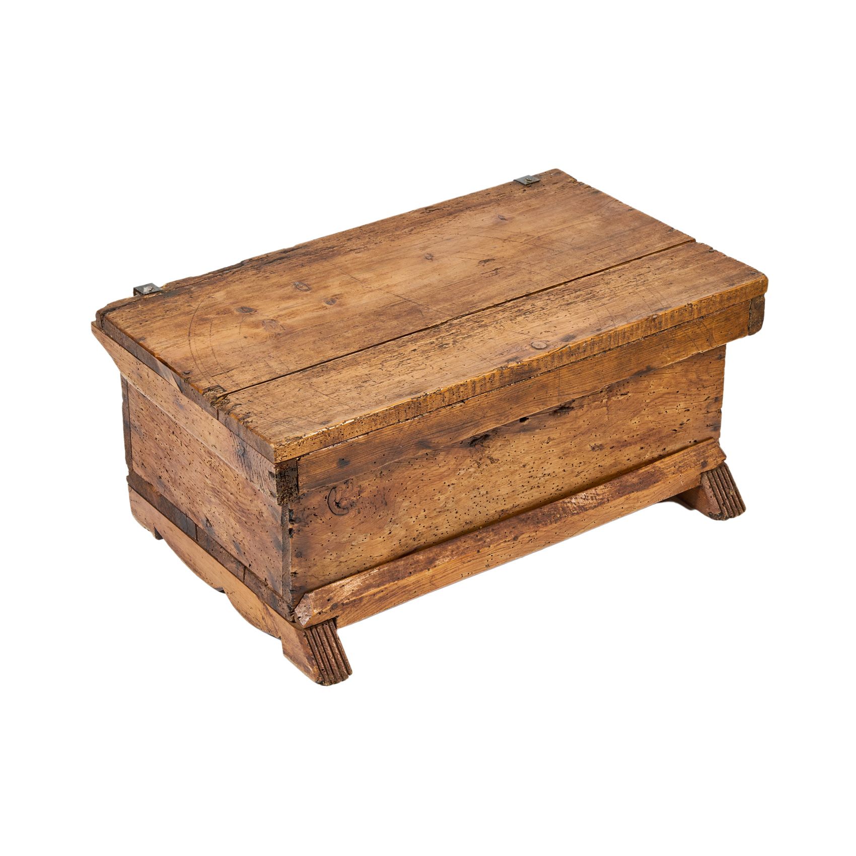 Pequeño arcón en madera de pino con herrajes en hierro, s.XIX. Adjunta llave.