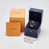 LOUIS VUITTON «Tambour». Reloj de pulsera para señora. En acero y correa de piel. Ref./ Nº TK5443 – Q1311, c.2015. Esfera marrón con numeración arábiga. Calendario fecha a las 3. Mecanismo de quartz.