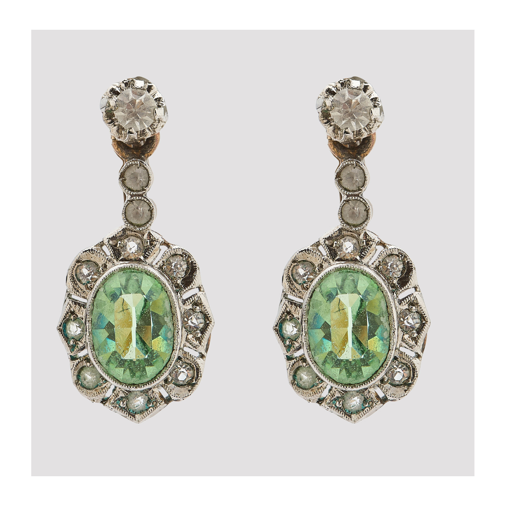 Pendientes en oro 9K con peridoto talla oval de 7 x 5 mm. y símiles de diamante.