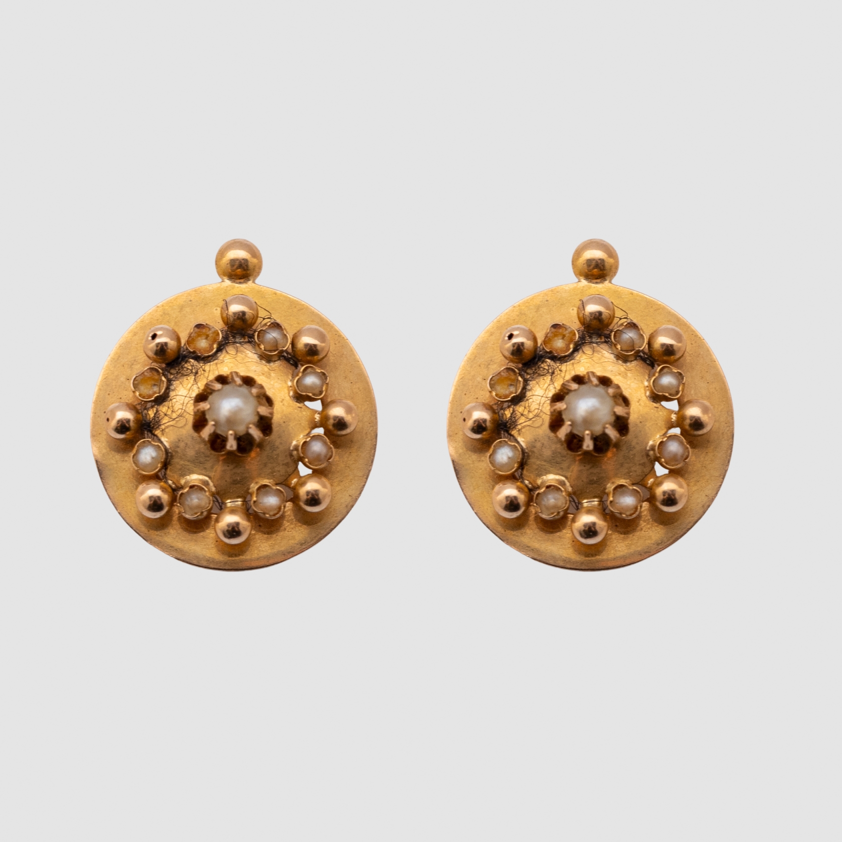 Pendientes eduardinos en oro con perlas de aljofar, c.1900.