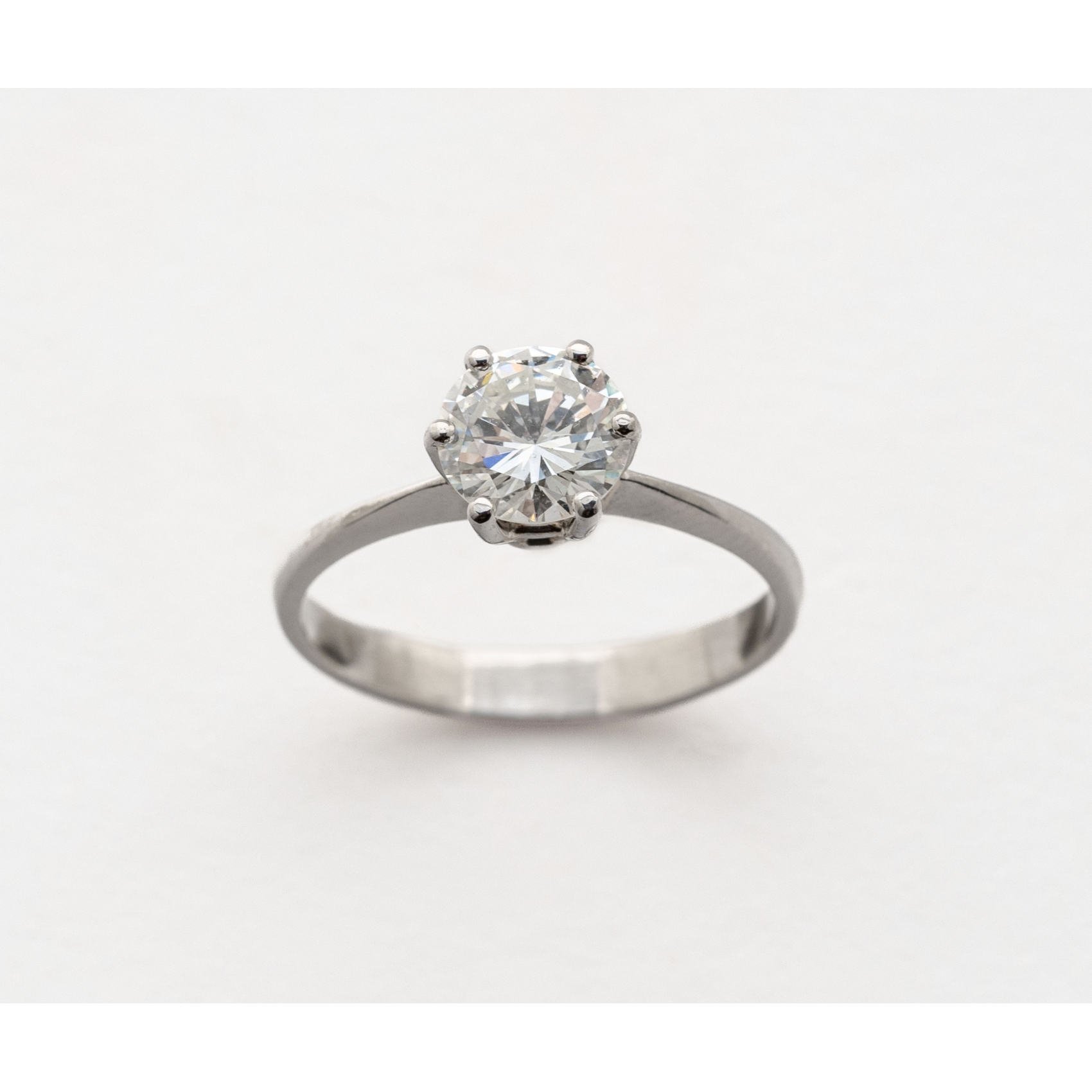 Sortija solitario en oro blanco con diamante talla brillante engastado en garras.