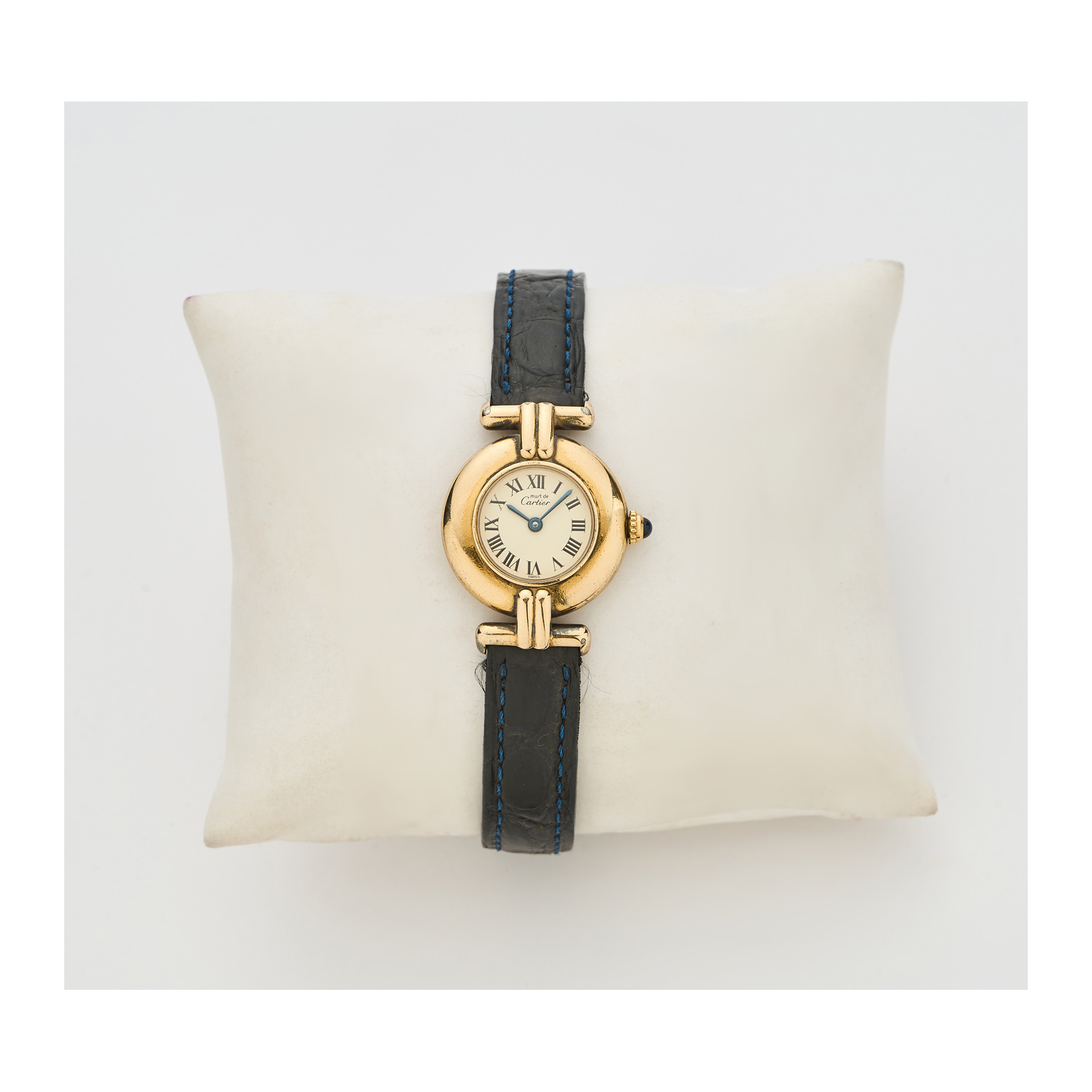 CARTIER.» le must». Reloj de pulsera para señora. En plata con plaqué oro y correa de piel. Ref/Nº 039879-590002. Esfera blanca con numeración romana. Mecanismo de quartz.