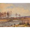 De Soto. Rafael Fernández de Soto (Bagá, Barcelona, 1915-Barcelona, 1984) Paisaje fluvial. Óleo sobre tela adherida a táblex. Firmado. 24 x 34 cm. Estimación: 320 – 380 €.