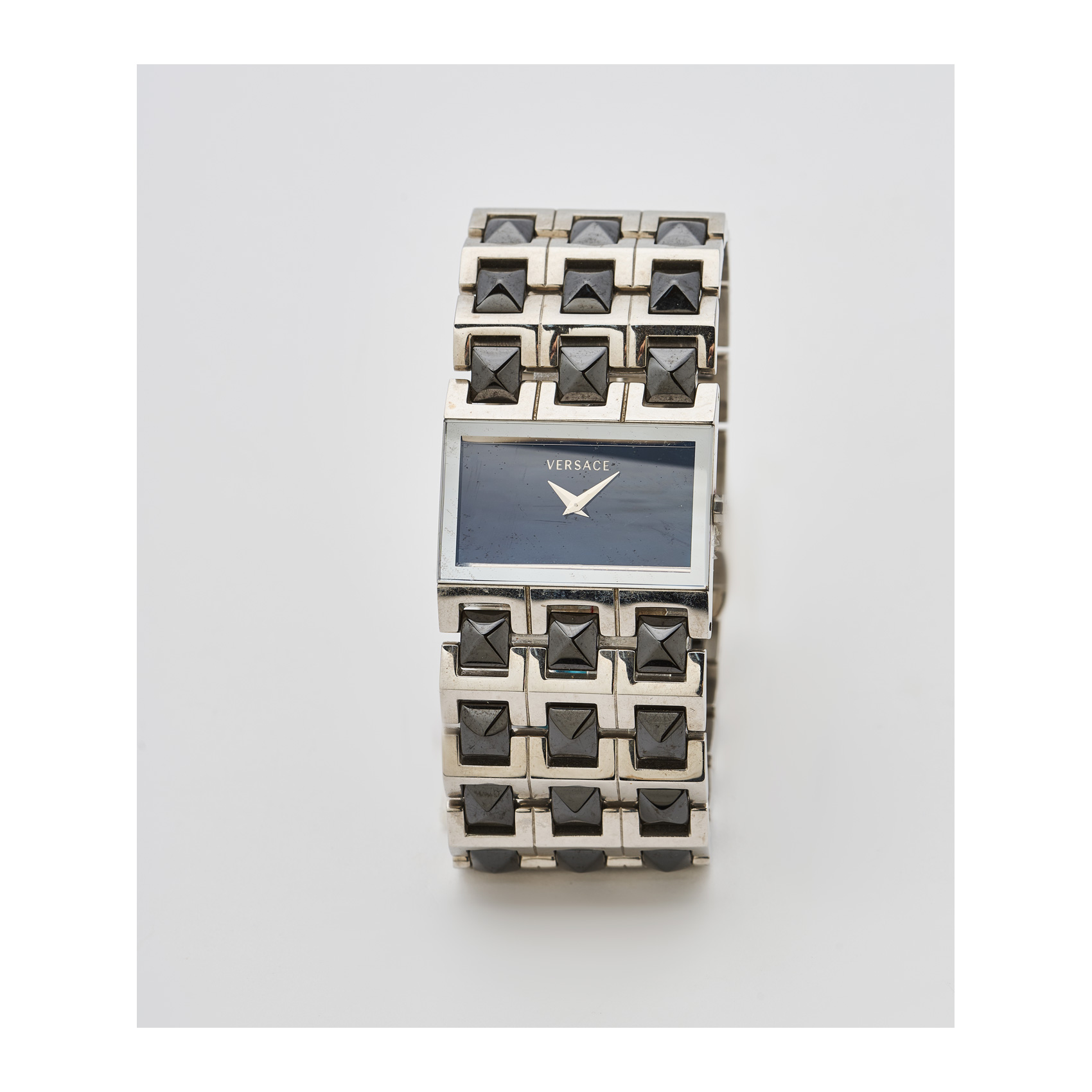 Reloj Versace de pulsera para señora. En acero y onix, Esfera negra sin numeración.