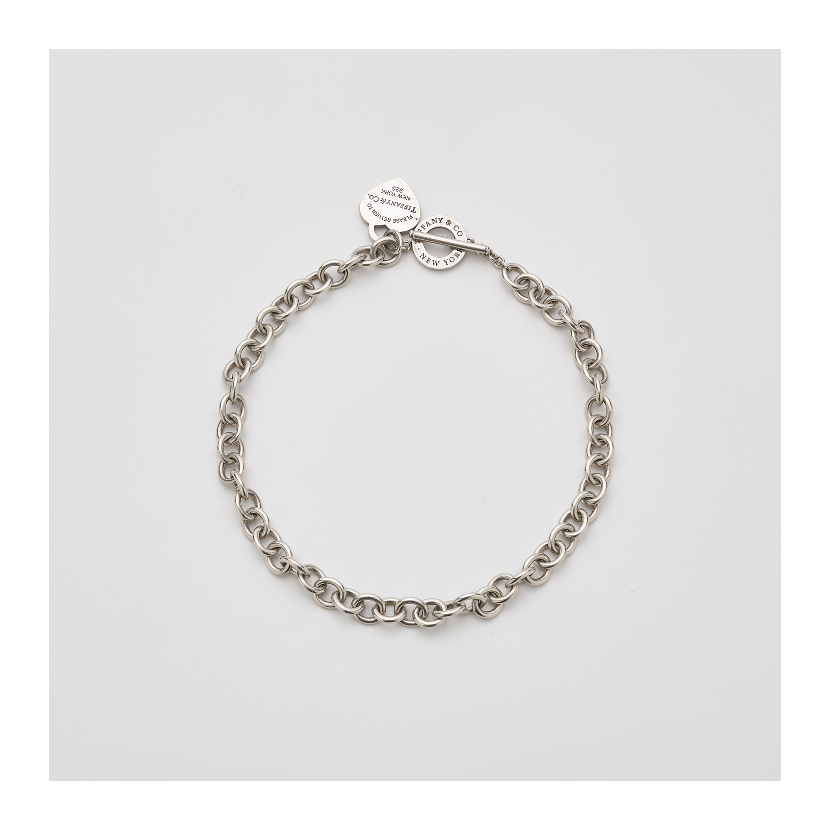 TIFFANY & COMPANY. Gargantilla de eslabones redondos rematados por corazón y círculo con el nombre de la marca.