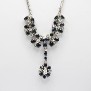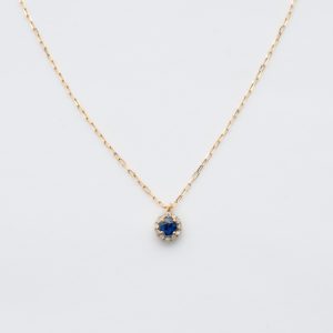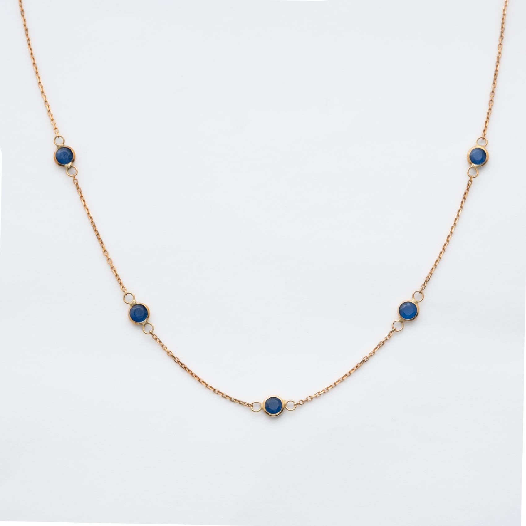 Gargantilla en oro con símiles de zafiro azul talla redonda de 3 mm. engastados en chatón.