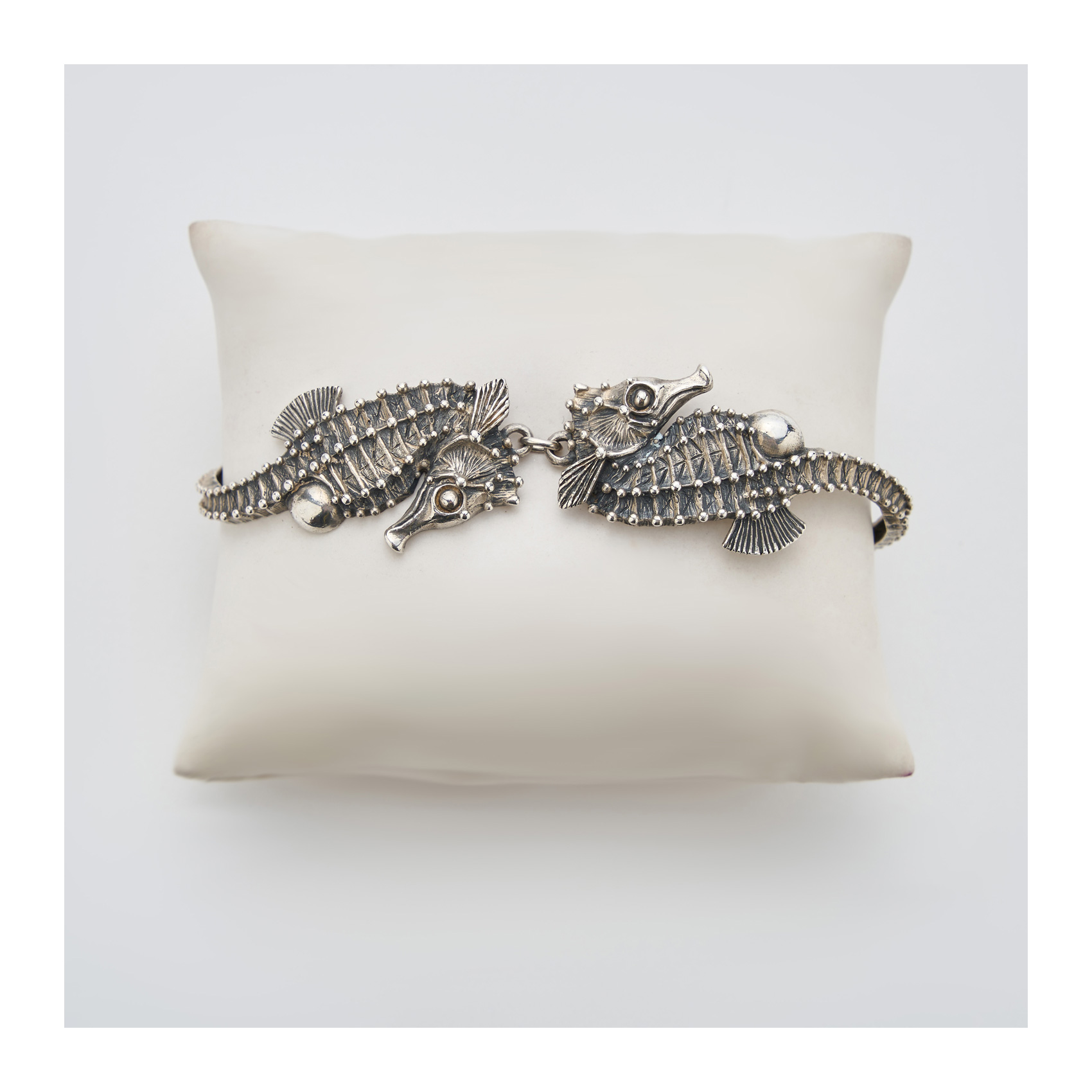 Pulsera semirígida tipo esclava diseño dos caballitos de mar.